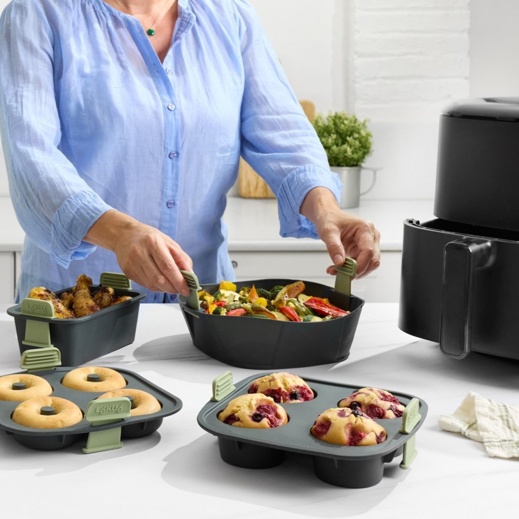 Basket for hot air fryer 25 x 25 cm, green, silicon, Lékué