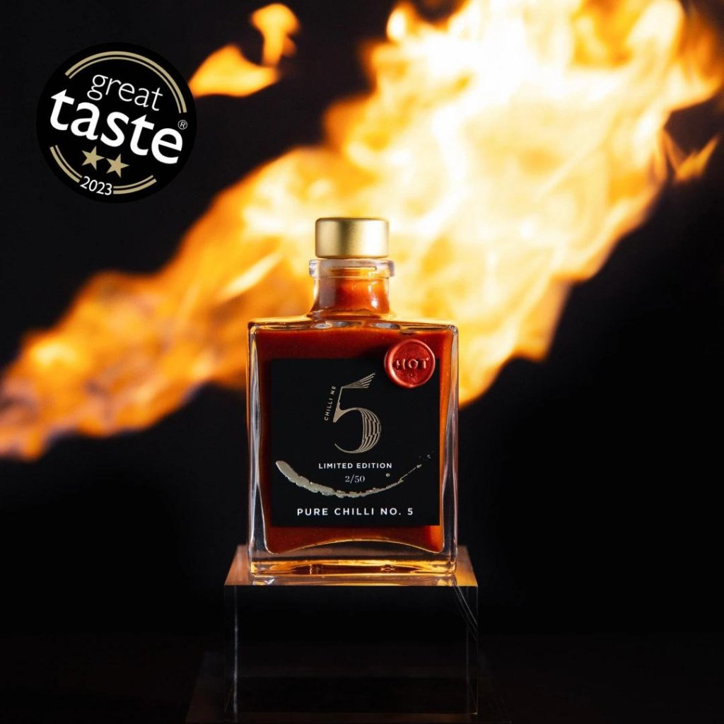 - PURE CHILLI NO. 5 is the hottest sauce from the Chilli No5 workshop, which serves as the basis for all other sauces of this brand and brings an uncompromising dose of heat and intense flavor.