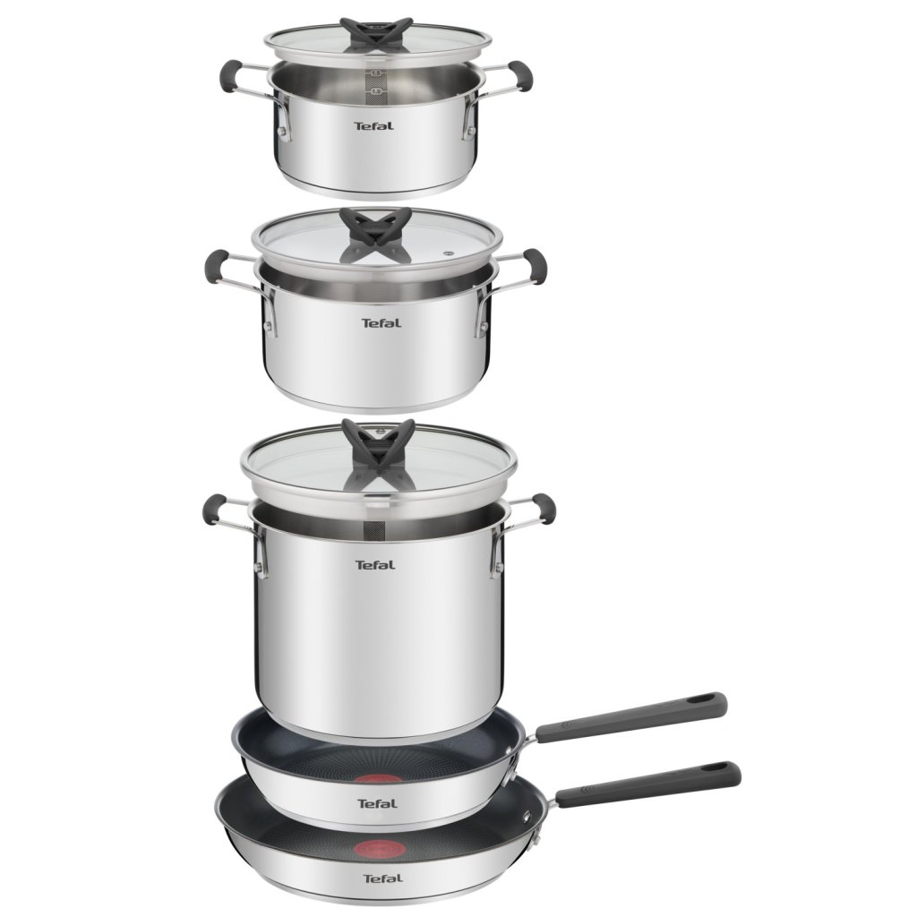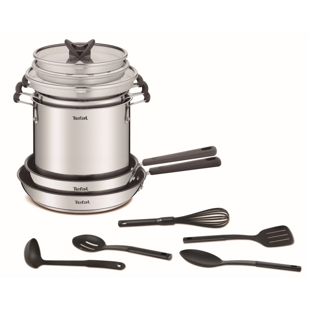 Cookware set OPTI'SPACE G737SD44, set of 13, silver, stainless steel, Tefal
