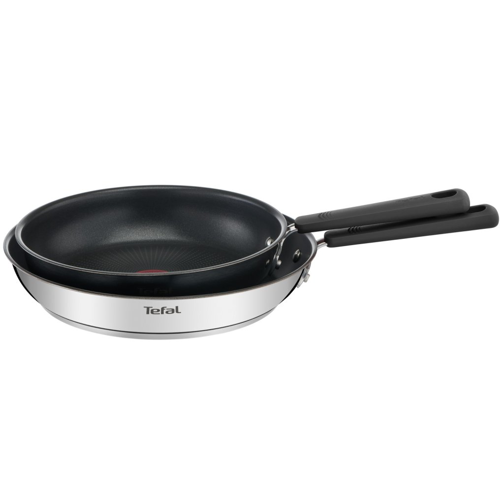 - pans have a durable (lasts up to 2x longer than standard Tefal) non-stick Titanium surface free of PFOA, cadmium and lead for frying and sautéing with little or no fat