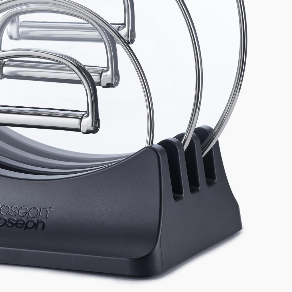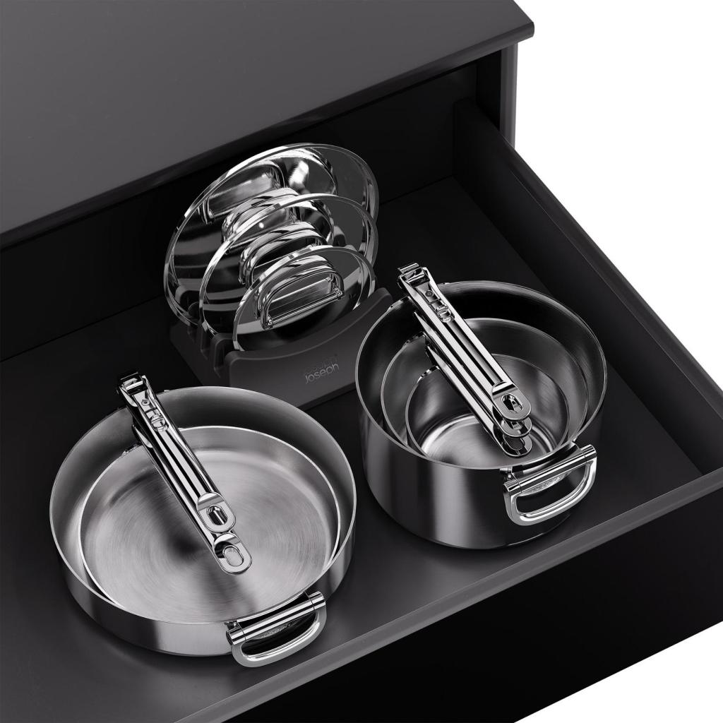 - A practical pot lid stand can hold up to three pot lids and helps keep your kitchen cabinet tidy.