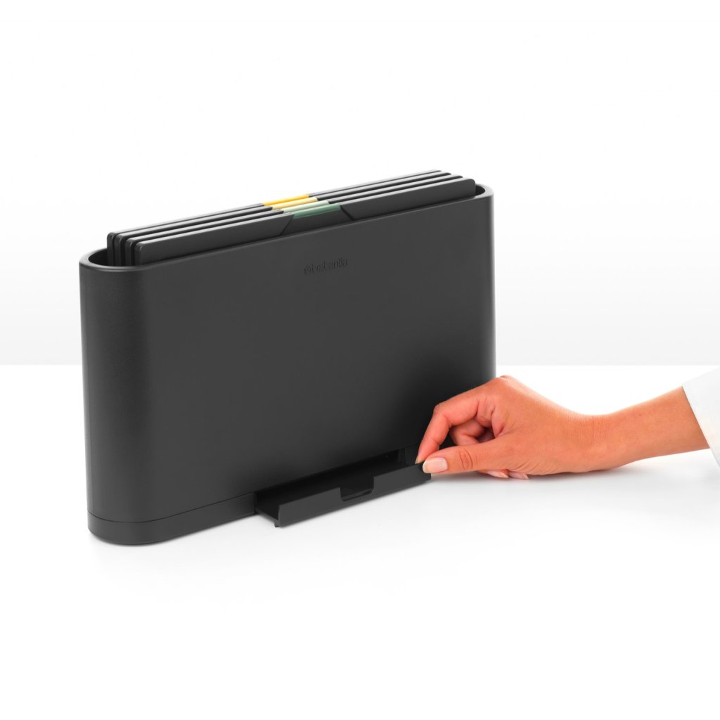 - Set of four cutting boards Brabantia TASTY+ with storage case offers a practical solution for hygienic and tidy cutting of food