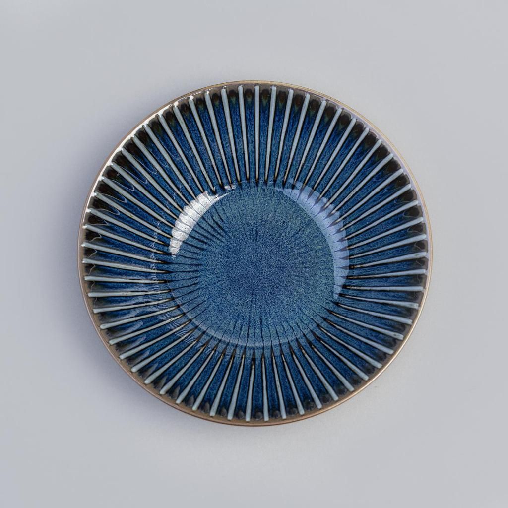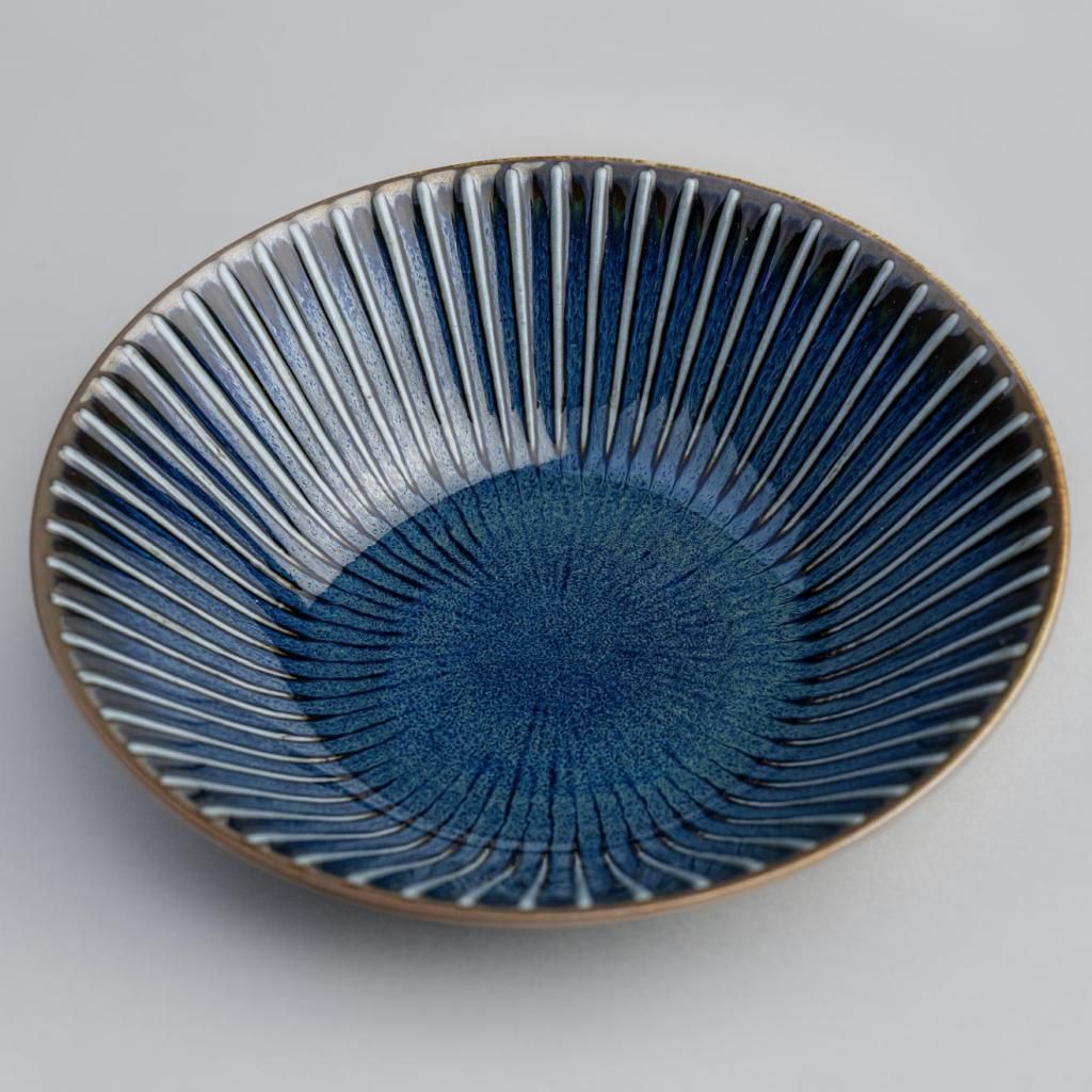 - The NAVY SENDAN ceramic bowl with a diameter of 17 cm stands out with its striking radial pattern and deep blue glaze, lending a modern Japanese character with attention to detail to your serving.