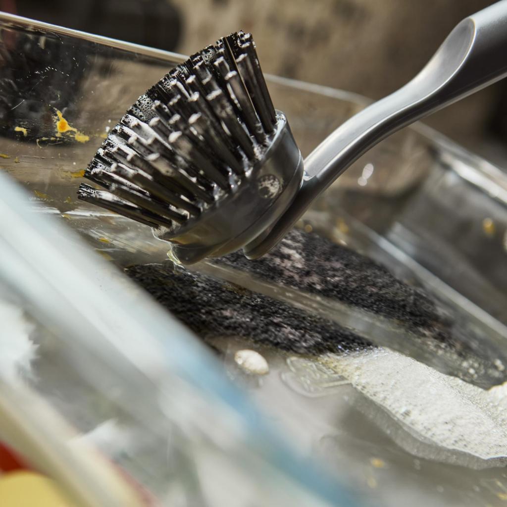 - Durable bristles designed to resist discoloration maintain their appearance long-term while tackling dried-on food residues with ease.