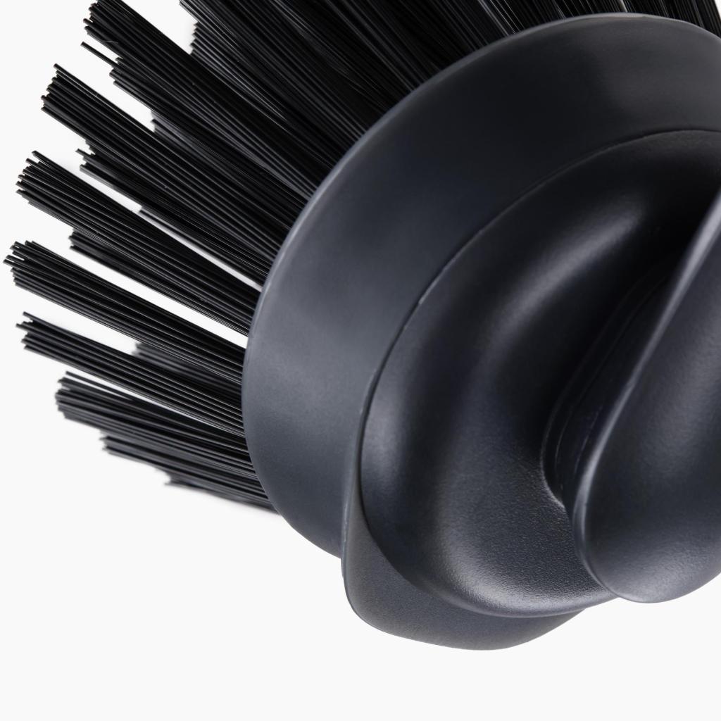 - The compact head shape allows for easy access into the corners of dishes, glasses, and narrower pots where dirt often accumulates.