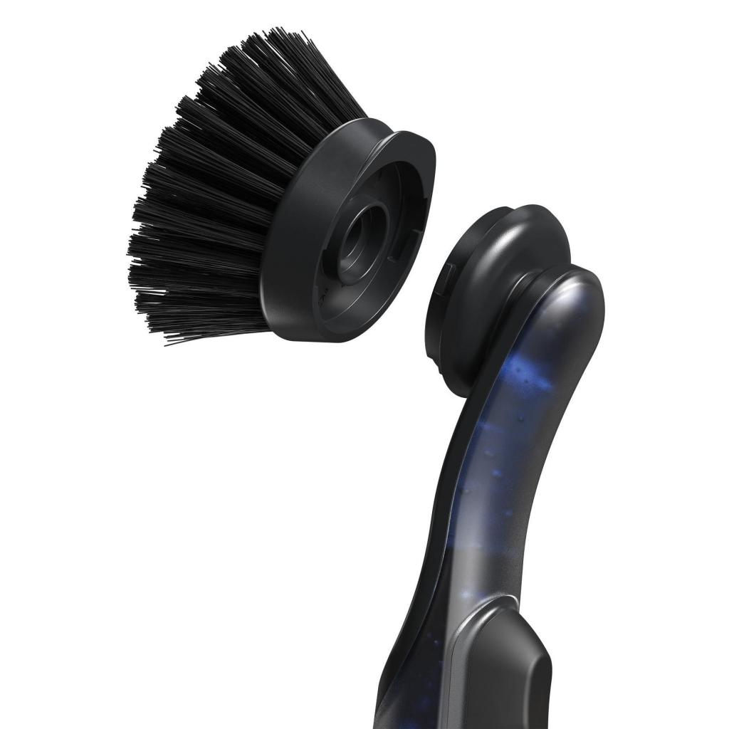 - The package includes a brush with a detergent dispenser and one replacement head, with other compatible replacement parts available separately.