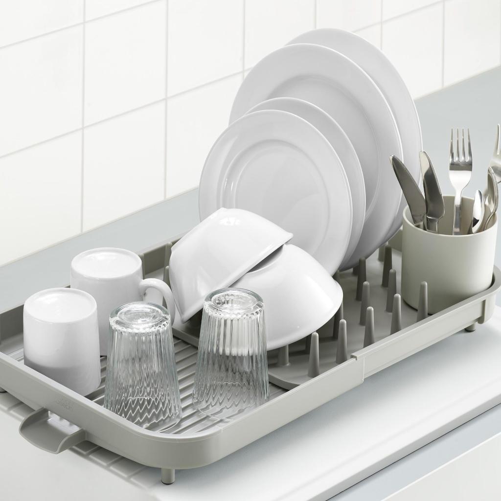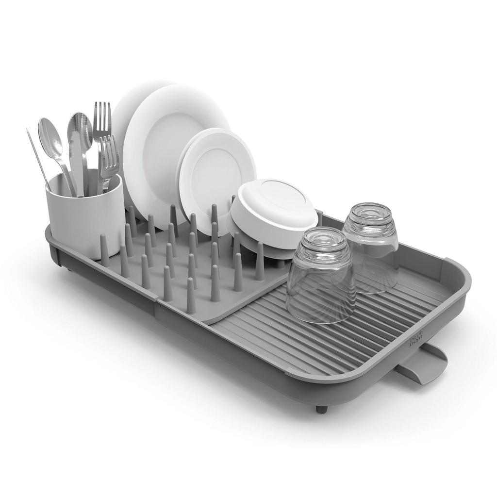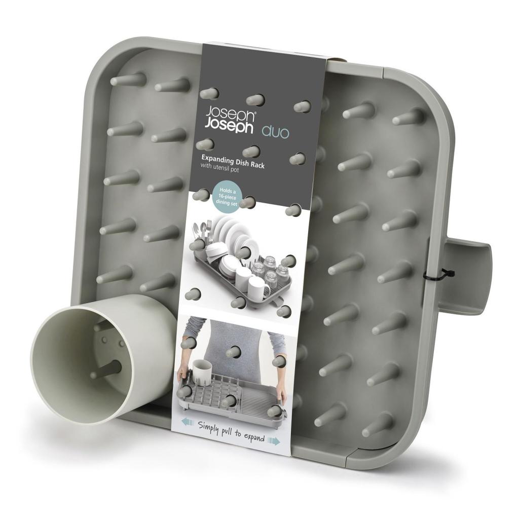- The expandable Joseph Joseph DUO dish rack offers a flexible solution for drying dishes and allows you to easily adapt the draining surface to your kitchen's current needs.