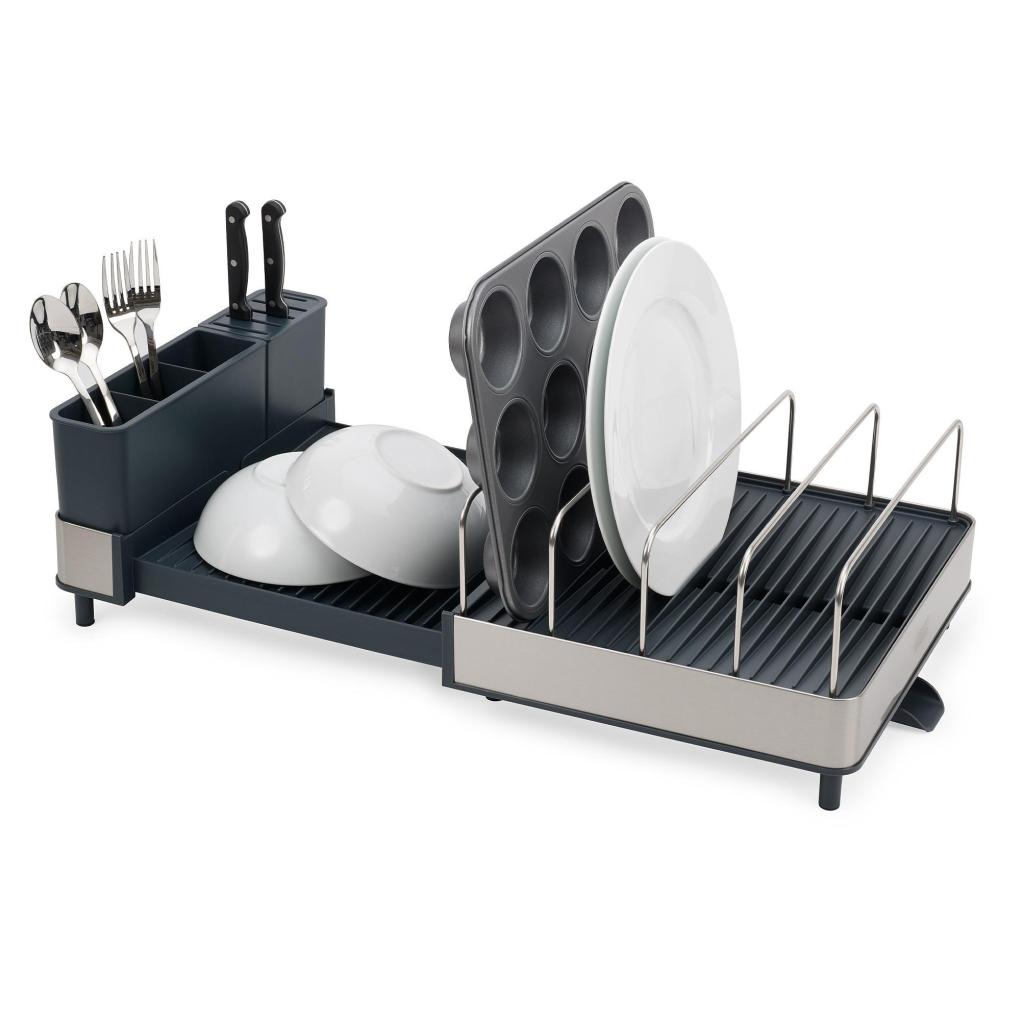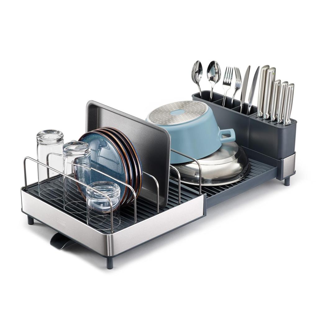 - The Joseph Joseph EXTEND MAX Dish drying tray offers generous space for drying dishes and, thanks to its expandable design, easily adapts to the amount of washed dishes.