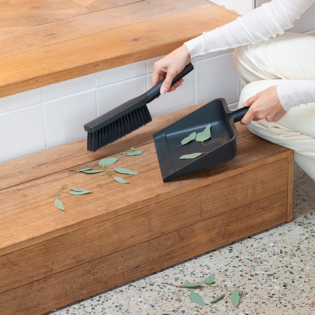 - dustpan and brush set Brabantia SINKSIDE in dark gray is ideal for quick and effective cleaning of small dirt in the kitchen or household