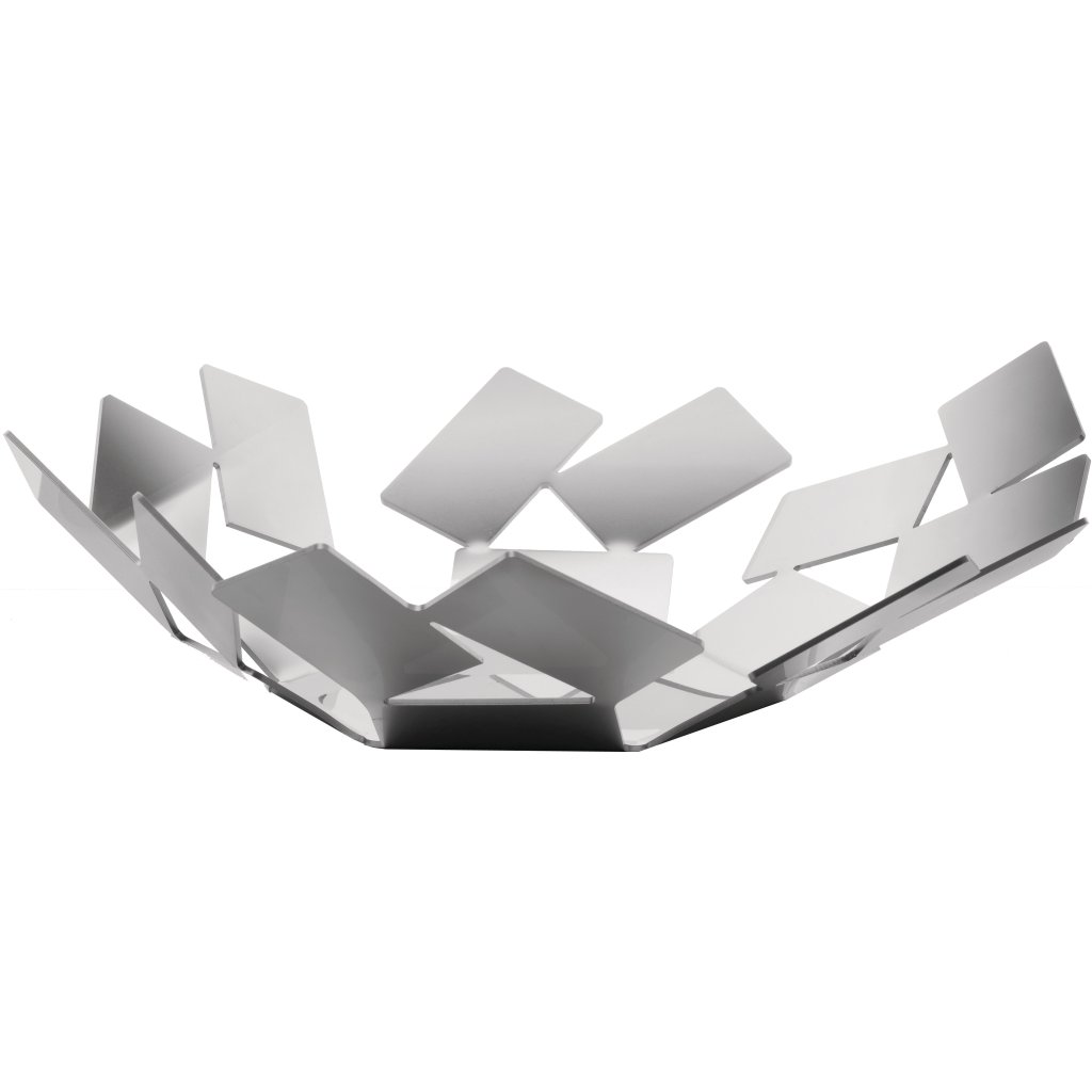 Fruit bowl from the La Stanza dello Scirocco design collection, designed by Sicilian designer Mario Timarchi. The collection is inspired by the magical atmosphere of old Sicilian houses, whose rooms lack windows and usually have only one light. Their inhabitants are waiting for the great heat to subside and the dry southerly wind called the Scirocco, which brings with it clouds of sandy dust from as far away as the Sahara. With its small fragments of different sizes and geometric irregularity, the collection offers an engaging imbalance of light and shadow.