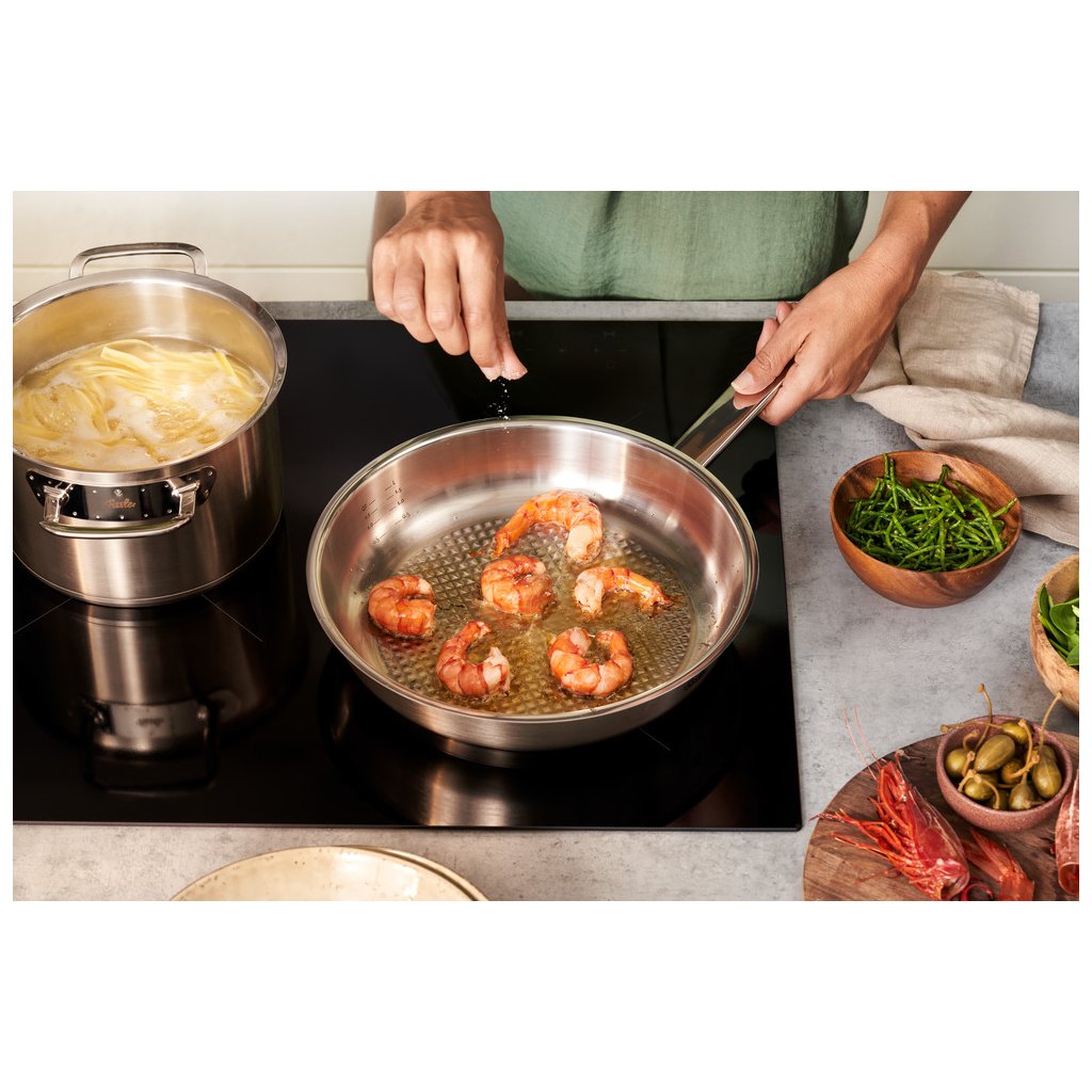 - excellent thermal conductivity for energy-efficient cooking thanks to the aluminium core