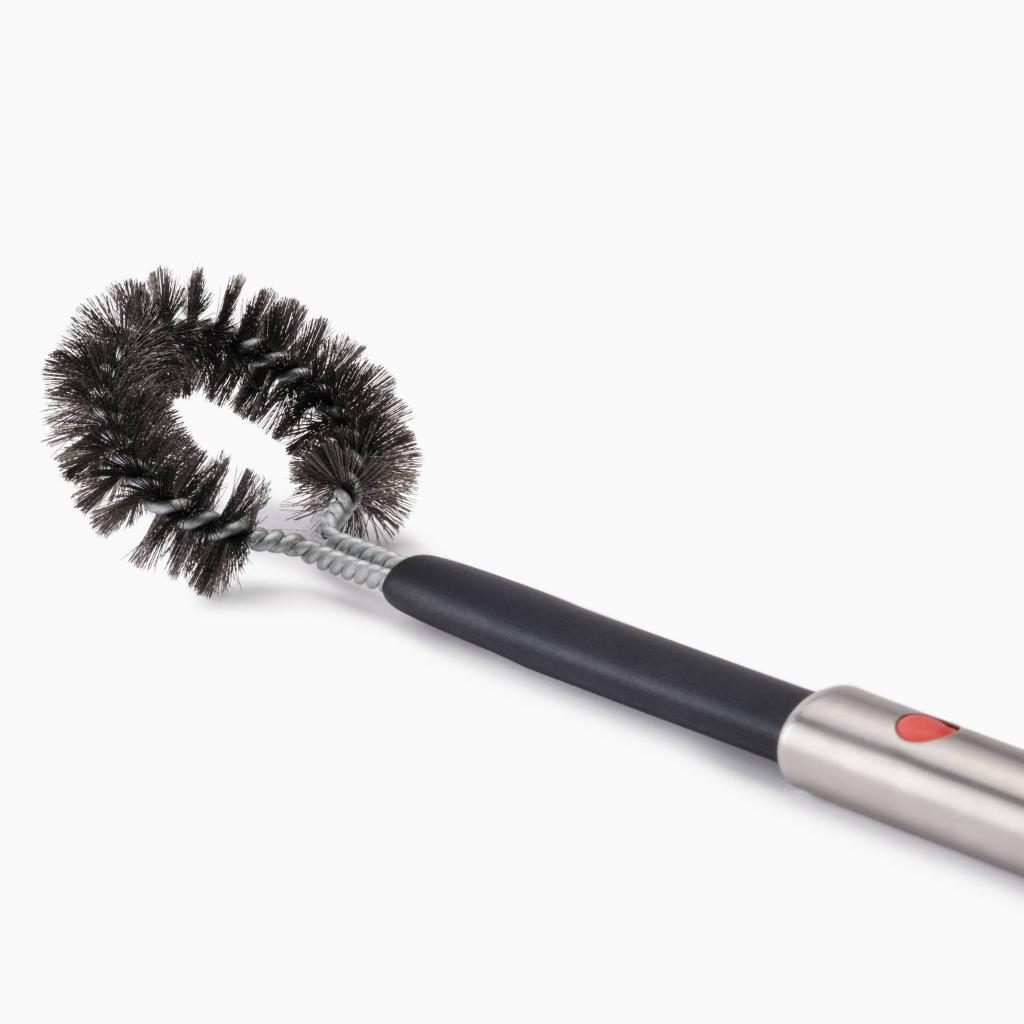 - The extendable handle allows for extension when cleaning a hot grill and subsequent retraction for compact storage.