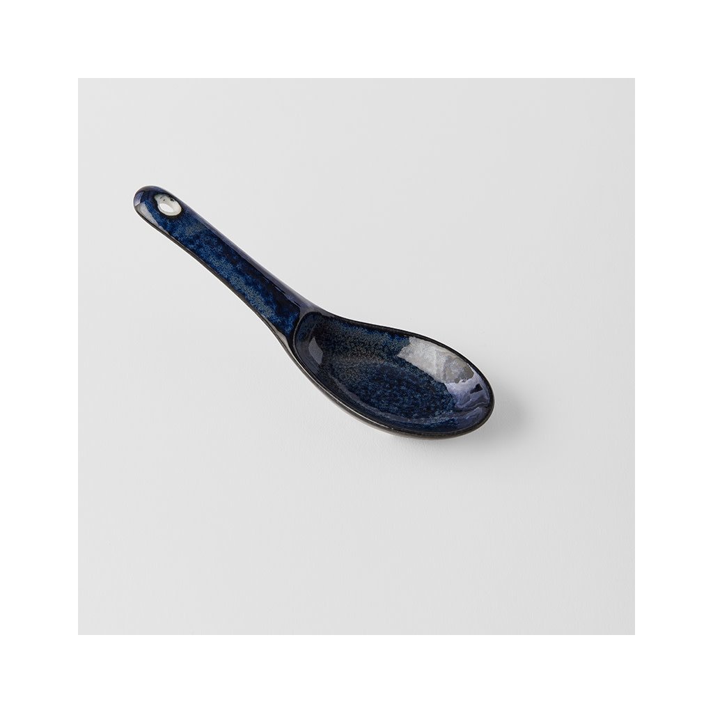Japanese ramen spoon INDIGO BLUE 15 cm, blue, ceramics, MIJ