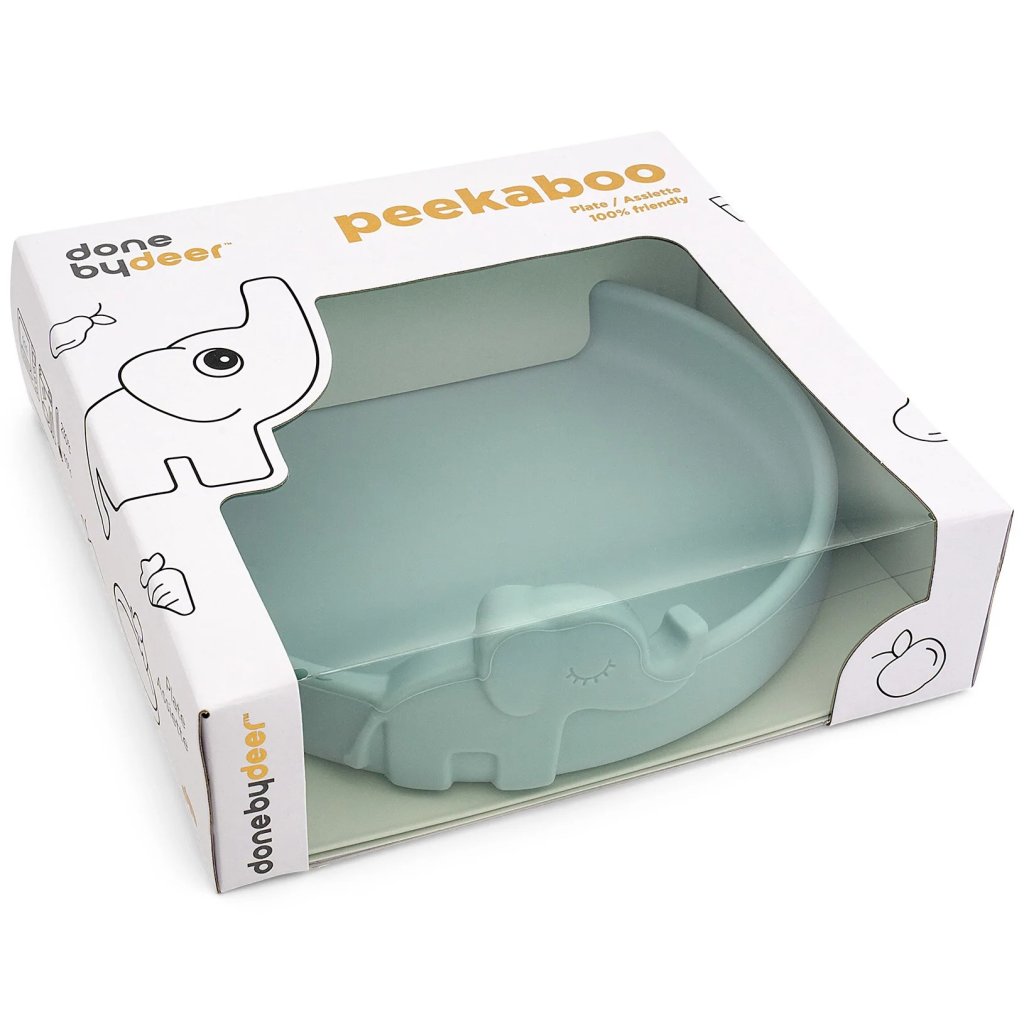 Kids plate PEEKABOO ELPHEE 16 cm, blue, silicone, Done by Deer