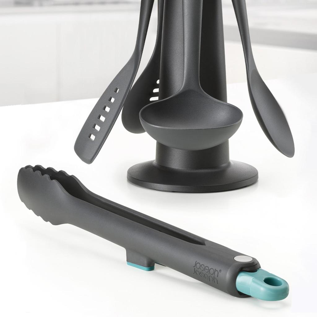 - Five-piece set of Joseph Joseph DUO OPAL kitchen utensils with a practical rotating stand offers a clear and stylish solution for everyday cooking and serving dishes.