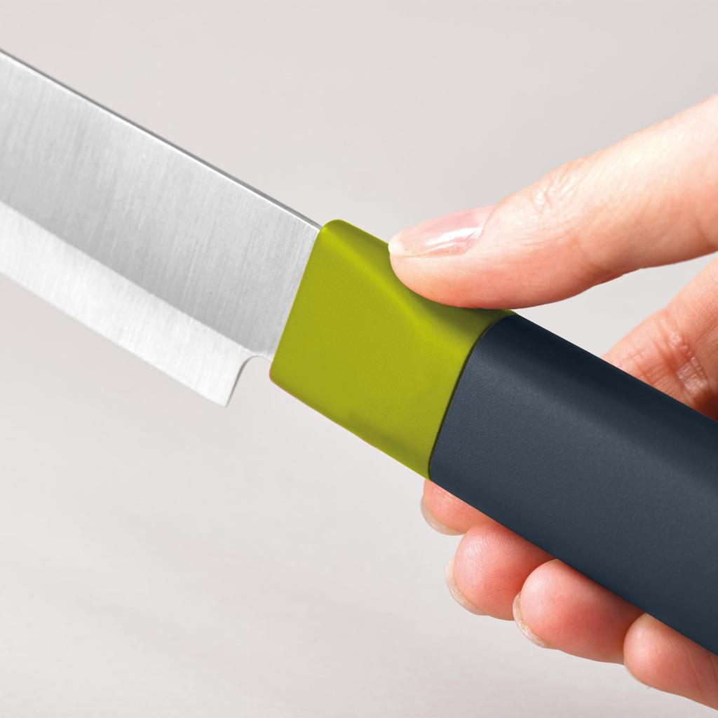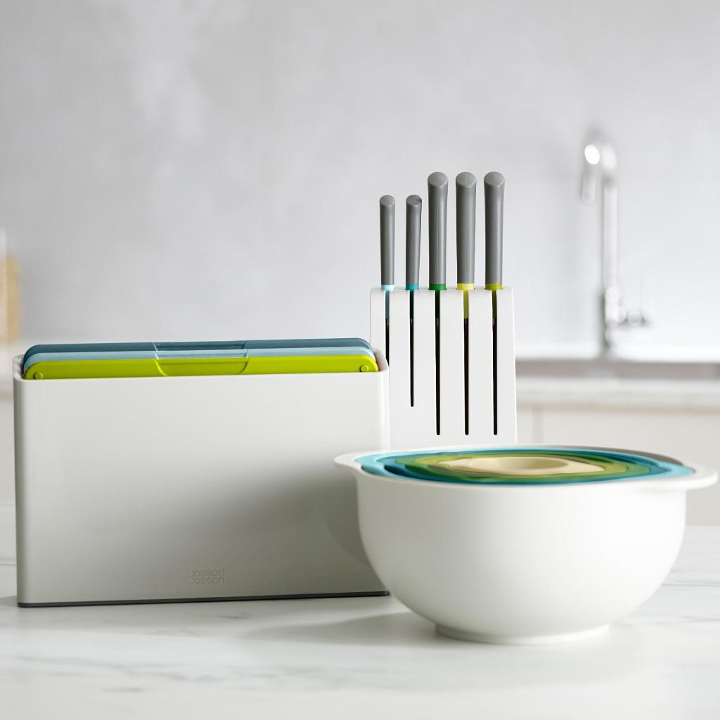 - The Joseph Joseph DUO knife block offers a complete solution for everyday food preparation, combining quality blades with clear storage in one place.