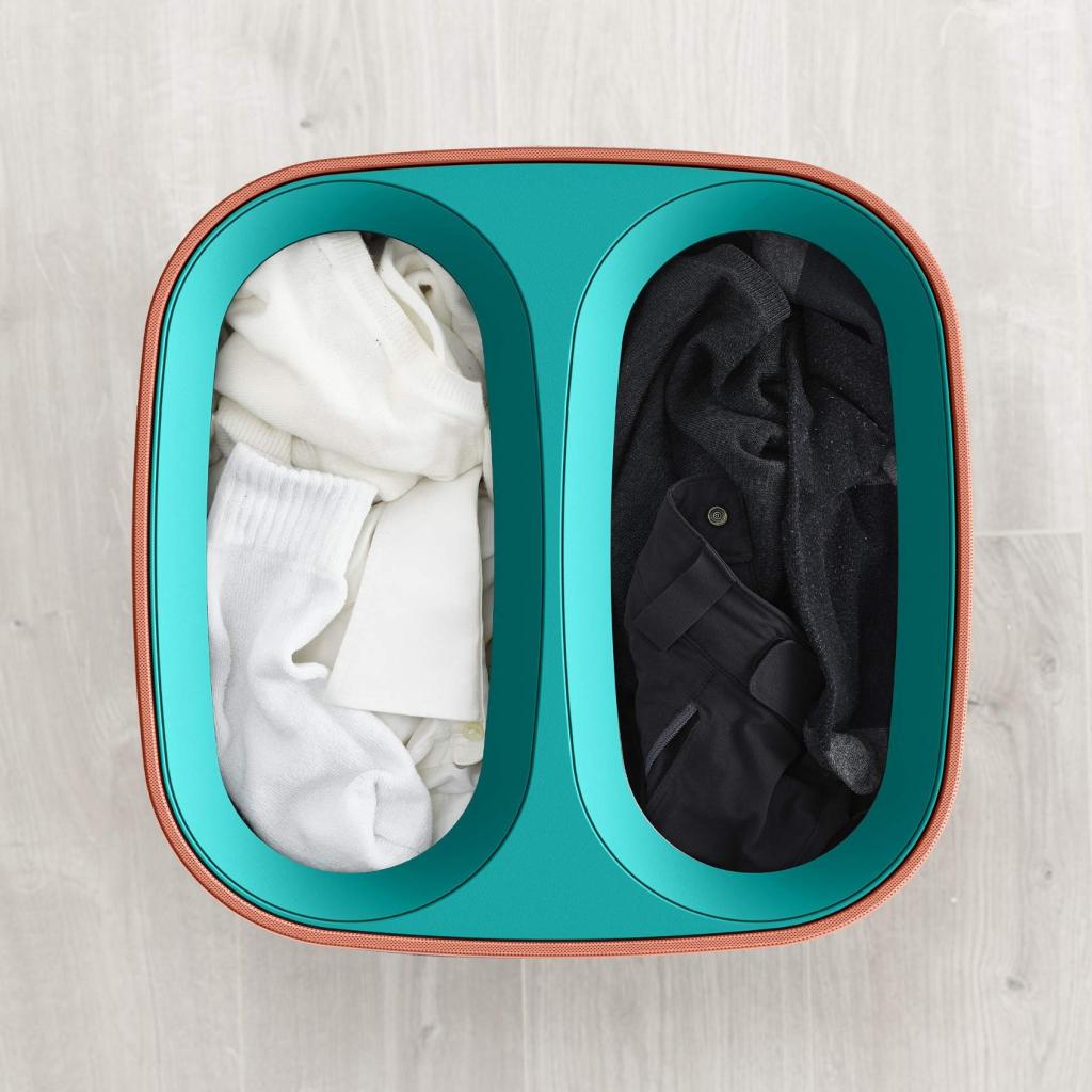 - Removable textile bags with sturdy handles make it easy to comfortably carry laundry directly to the washing machine without needing to handle the entire basket.