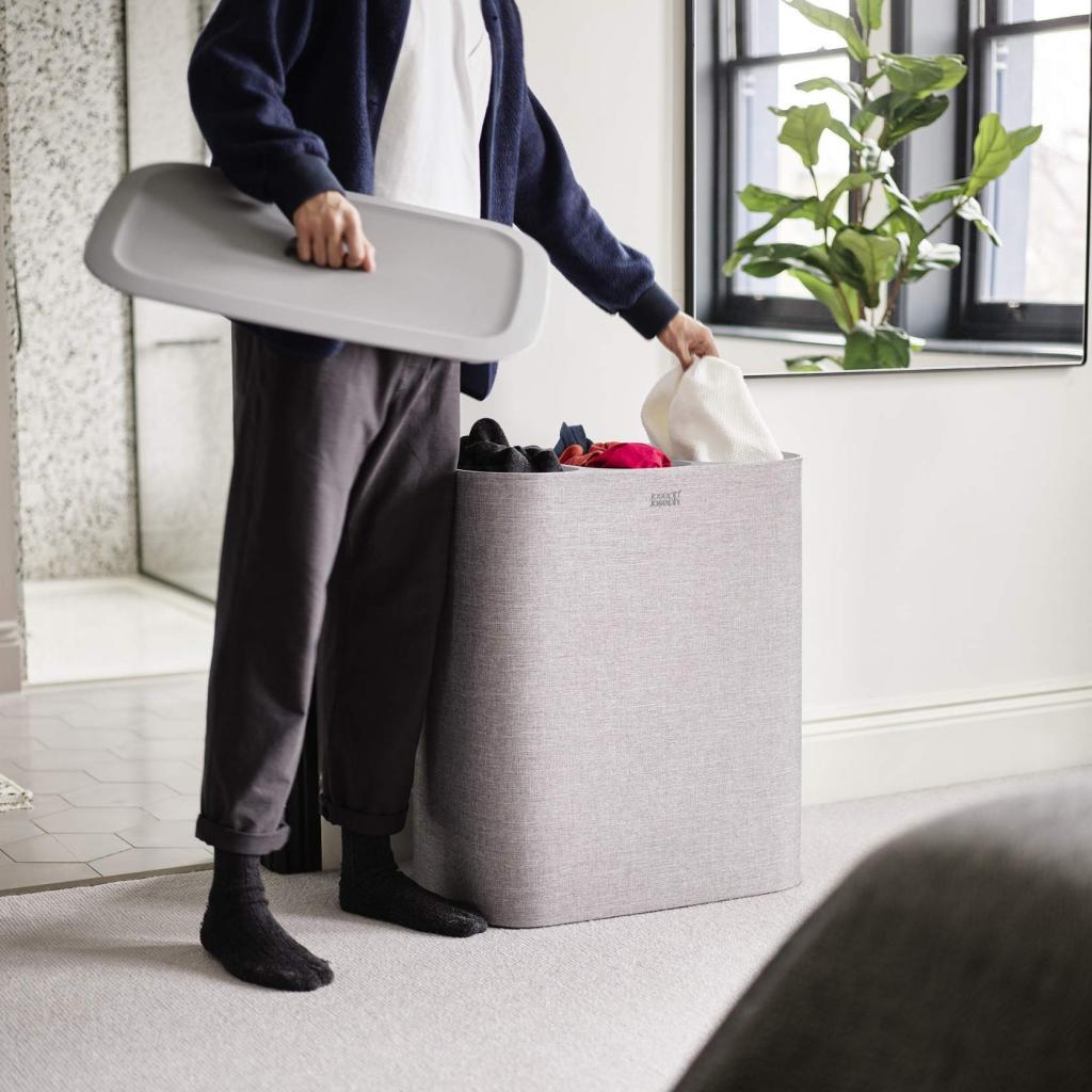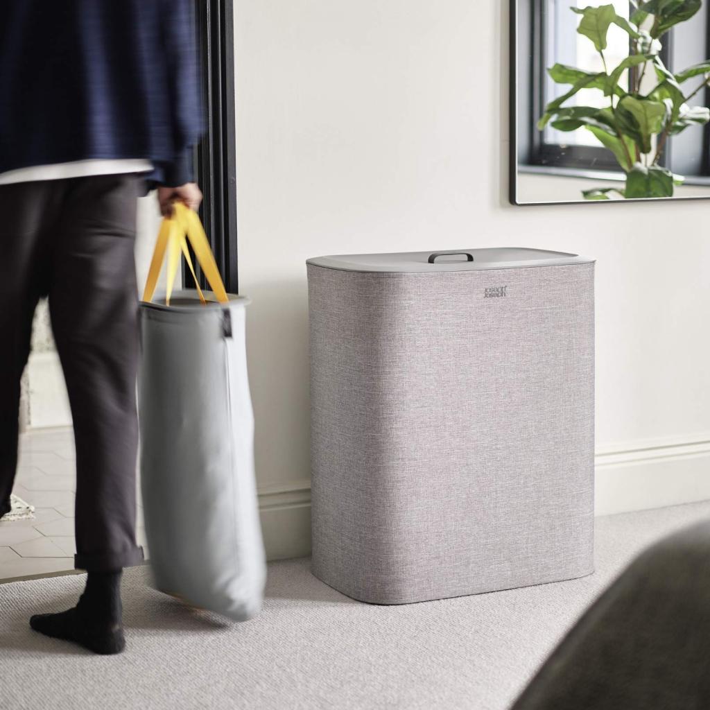 - Laundry bin Joseph Joseph TOTA TRIO in gray offers a practical and clear solution for sorting laundry in the bedroom, bathroom or utility room.