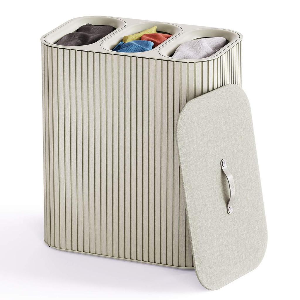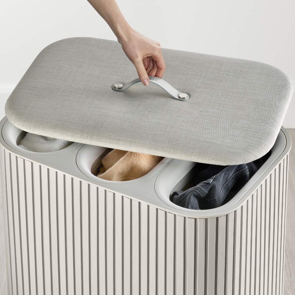 - Three separate compartments with a capacity of 30 liters each allow for easy separation of light, dark, and colored laundry as you put it away.