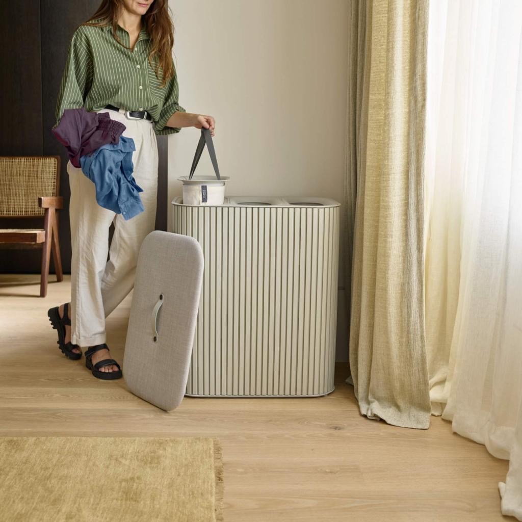 - Laundry bin Joseph Joseph TOTA TRIO LUXE in ecru is an elegant and practical solution for sorting laundry in a modern household.