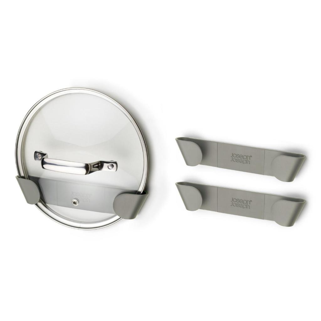 - The set of 3 self-adhesive lid holders Joseph Joseph DUO is a practical solution for neatly and space-saving storage of lids inside kitchen cabinets or drawers.