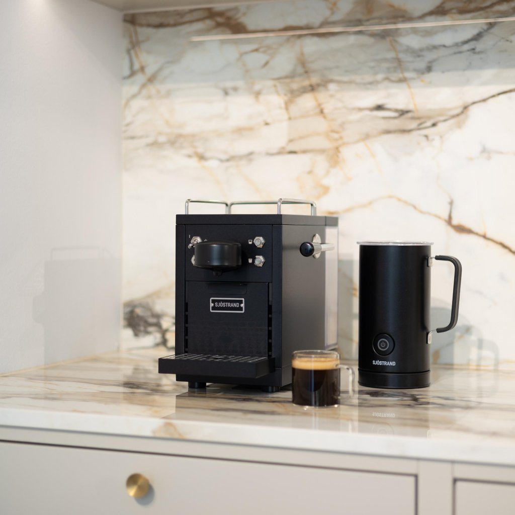 - Milk frother Sjöstrand allows you to conjure up perfectly smooth and fluffy foam in just a few seconds, whether you're preparing cappuccino, latte, macchiato or hot chocolate.