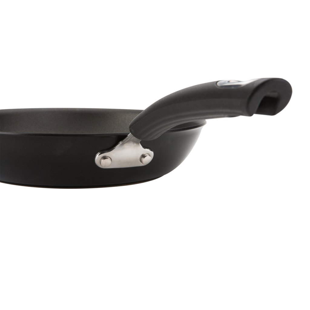 - hard-anodized aluminum construction provides excellent durability and ensures even heat distribution, eliminating hot spots and preventing food from burning