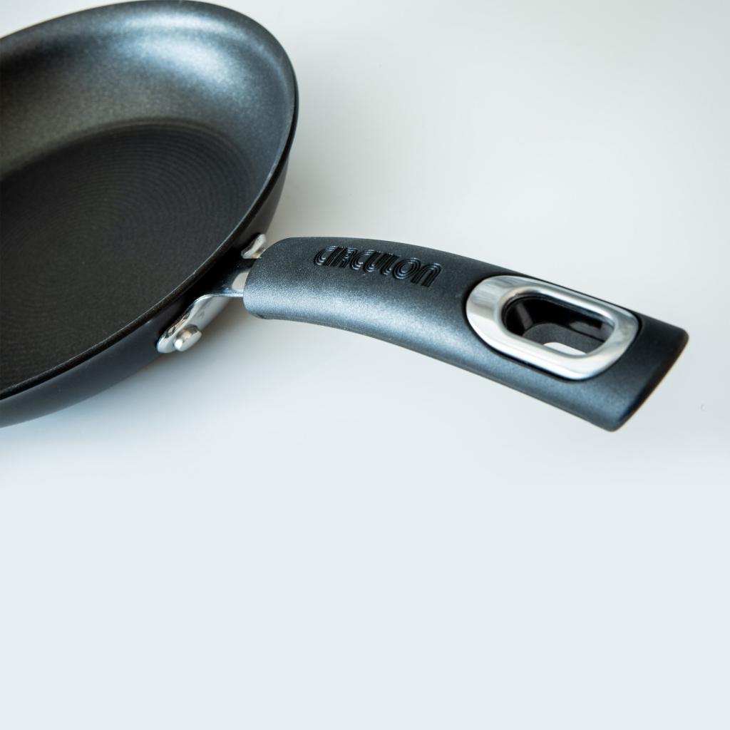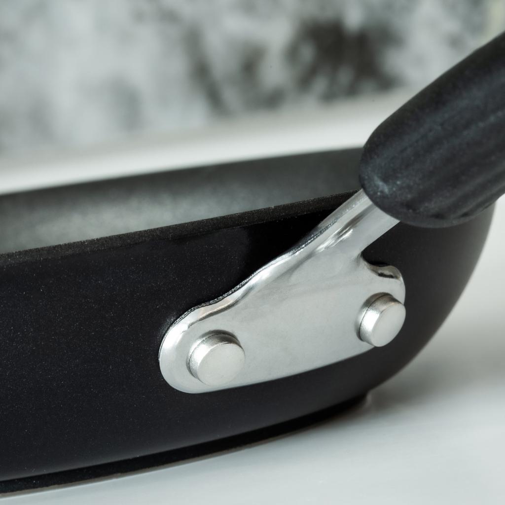 - the durable construction and specially reinforced base allow for use in the oven up to 180 °C, so you can easily combine frying on the stove with finishing the meal in the oven