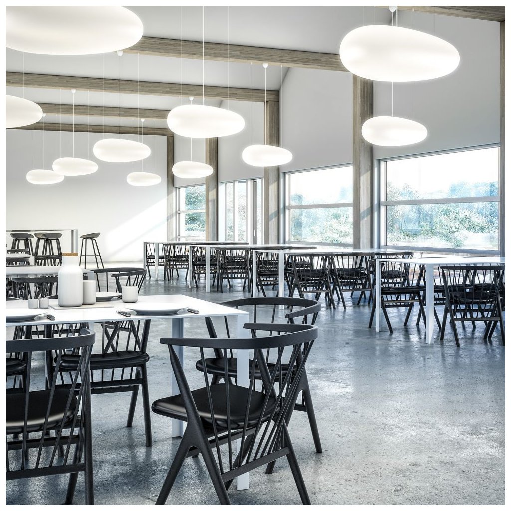 - the combination of soft diffuse light and oval shape creates a cosy atmosphere