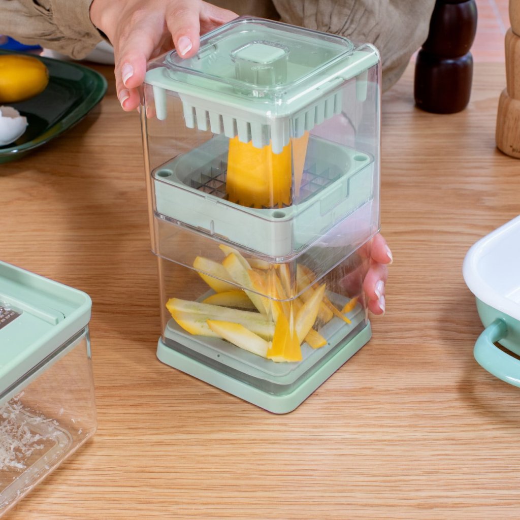 - Potato slicer Brabantia TASTY+ in jade green allows for easy and quick cutting of vegetables into cubes or wedges