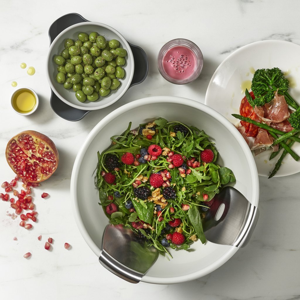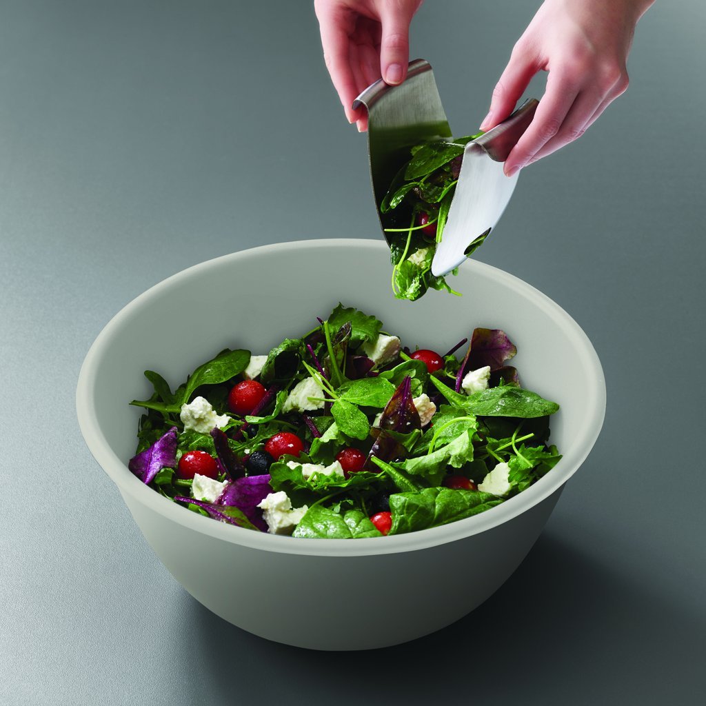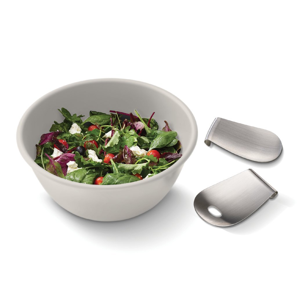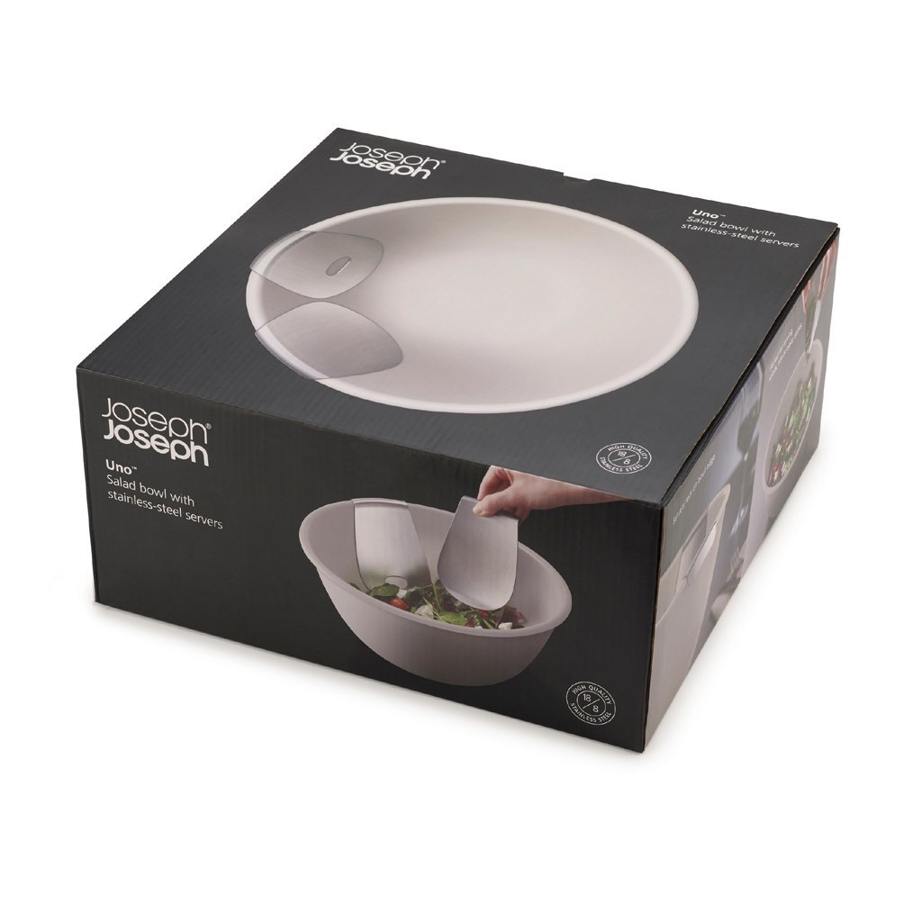 The salad serving tools of the JOSEPH JOSEPH Uno set are always at hand - they are stored directly on the edge of the salad bowl. The large bowl (30 cm) is suitable for serving salads, rice and pasta. The plastic materials used are health-safe (Bisphenol A-free - BPA-free).