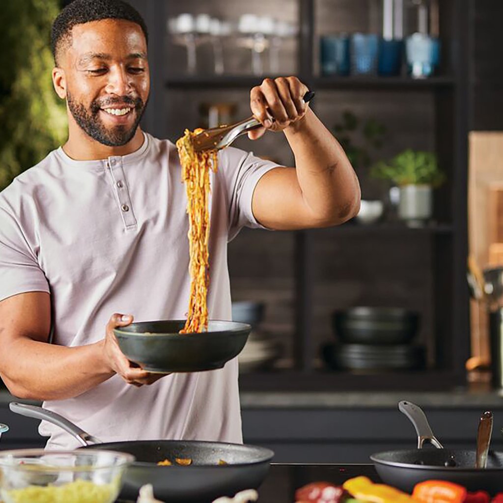 - the modern surface in graphite grey gives the pan an elegant look that fits into any kitchen