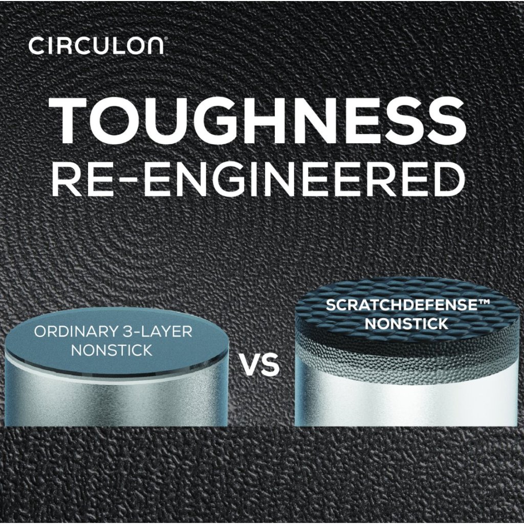- special ScratchDefense technology, using aerospace-grade durability, eliminates the risk of scratches, peeling and food sticking