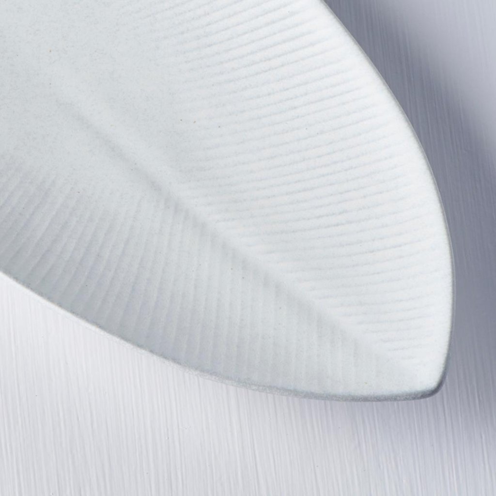 - The elongated serving platter SNOW LEAF with a length of 31 cm brings an elegant and clean way to serve main courses, sushi or shared dishes in a subtly minimalist spirit.