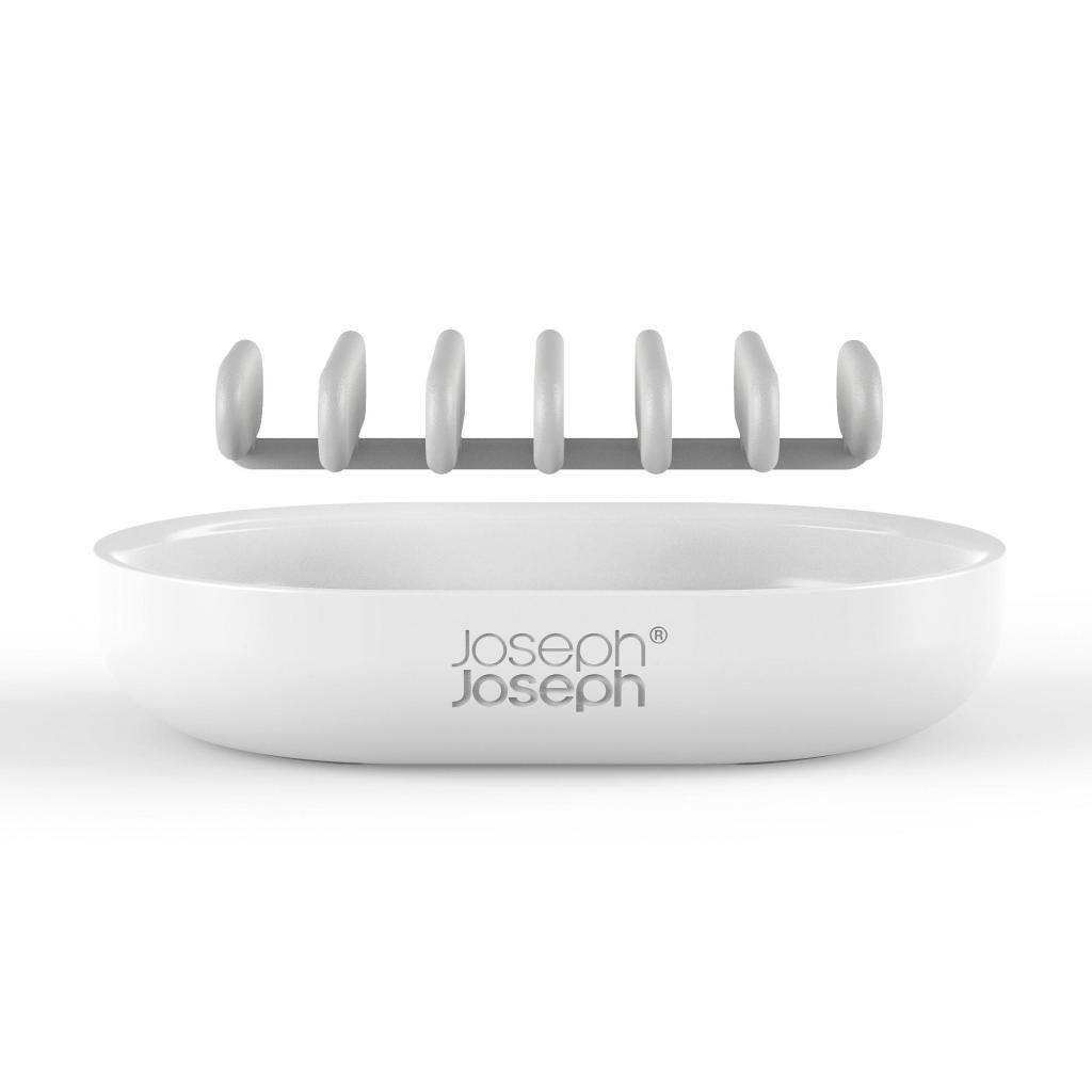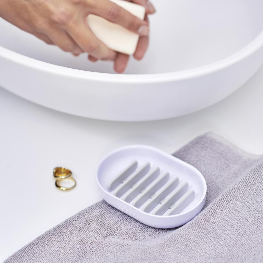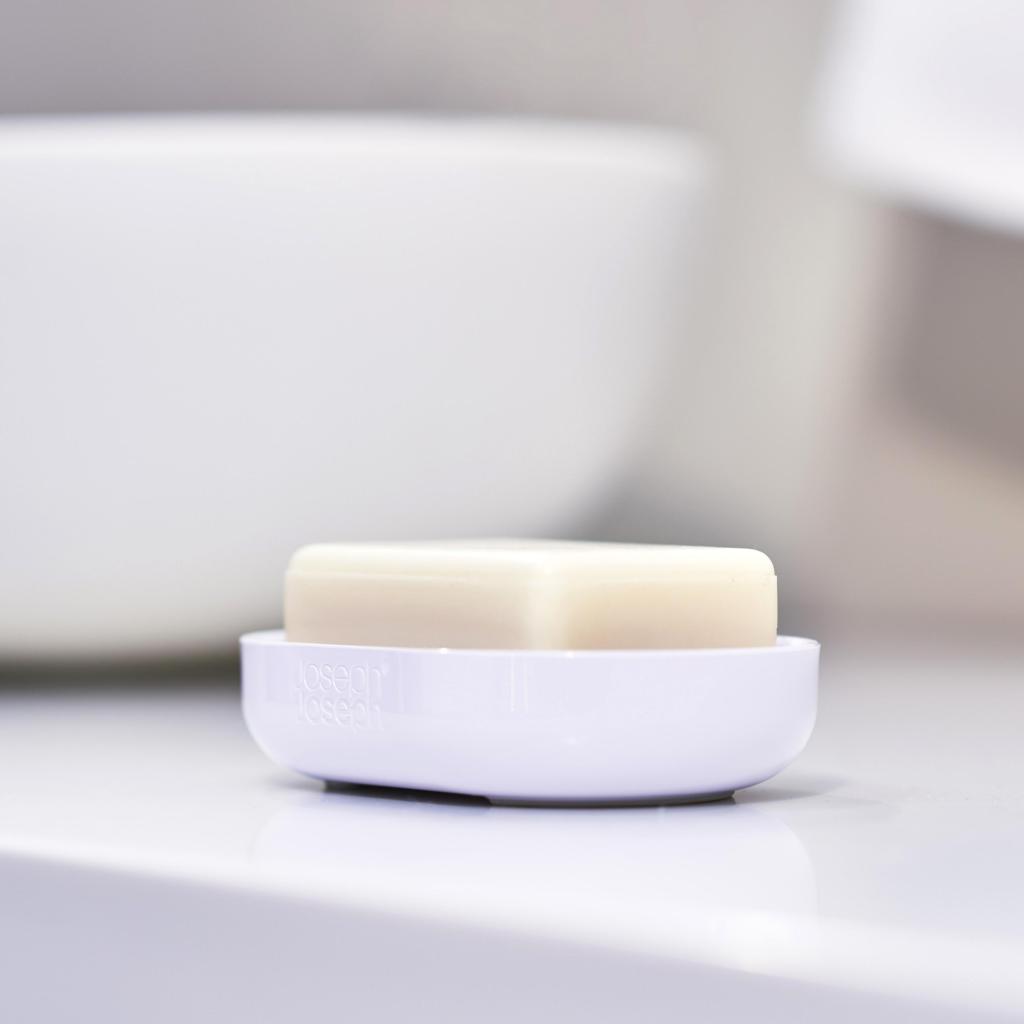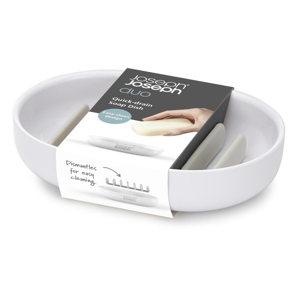 - The Joseph Joseph DUO soap dish is a practical bathroom accessory designed for safely storing bar soap and maintaining cleanliness around the sink.