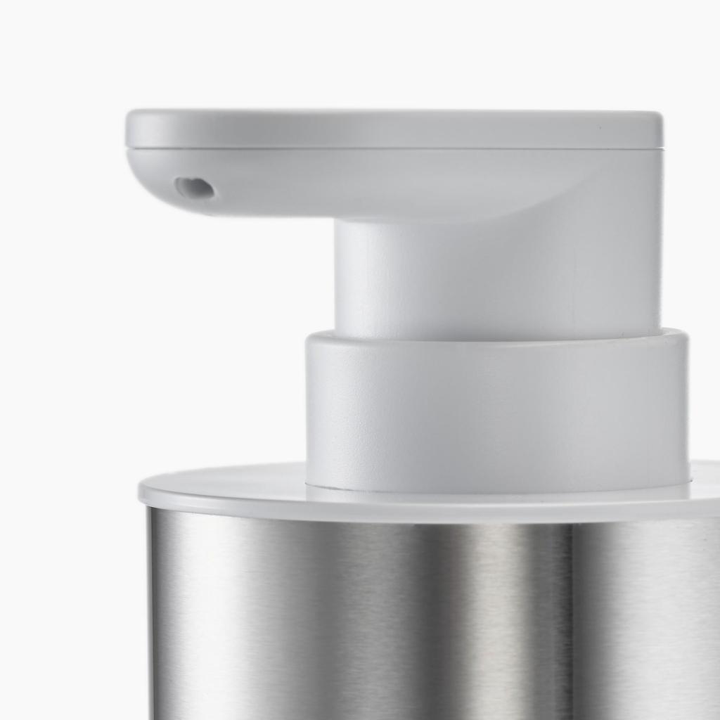 - The large pump head allows for easy and comfortable dispensing of soap with a light press of the palm or fingers.