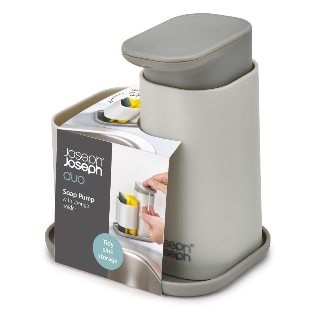 - The soap or detergent dispenser with sponge holder DUO 851679 is a practical and compact solution for keeping things tidy around the kitchen sink or washbasin.