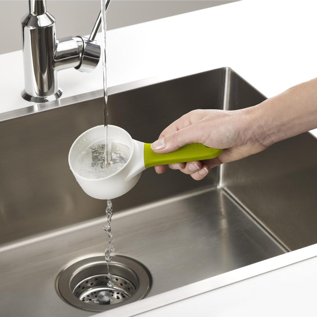 - The modern green and white design fits into the DUO design range and matches other kitchen accessories in this collection.
