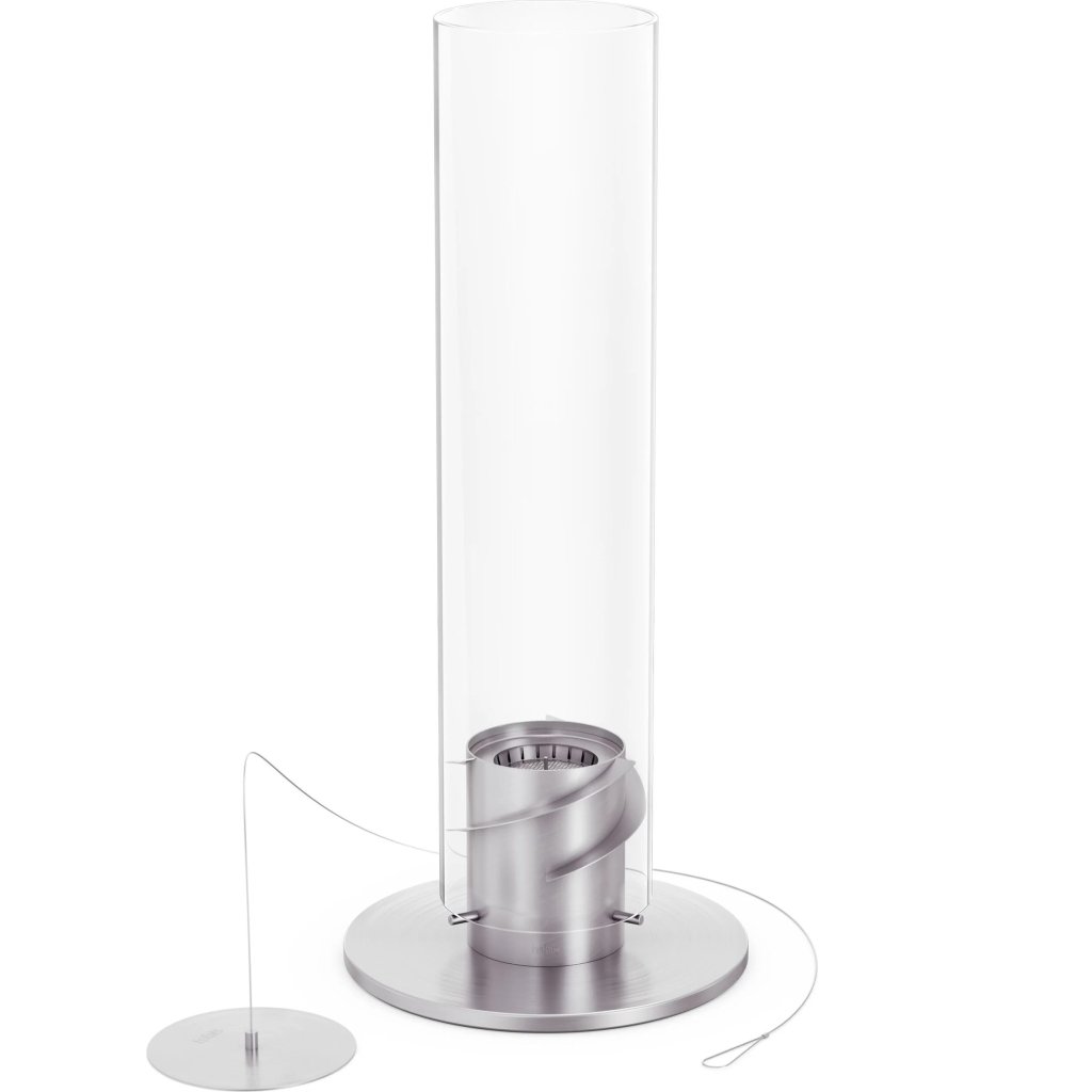 - the glass cylinder protects the flame from the wind and also serves as a safety barrier, making the fireplace safe to use even in the presence of children or pets