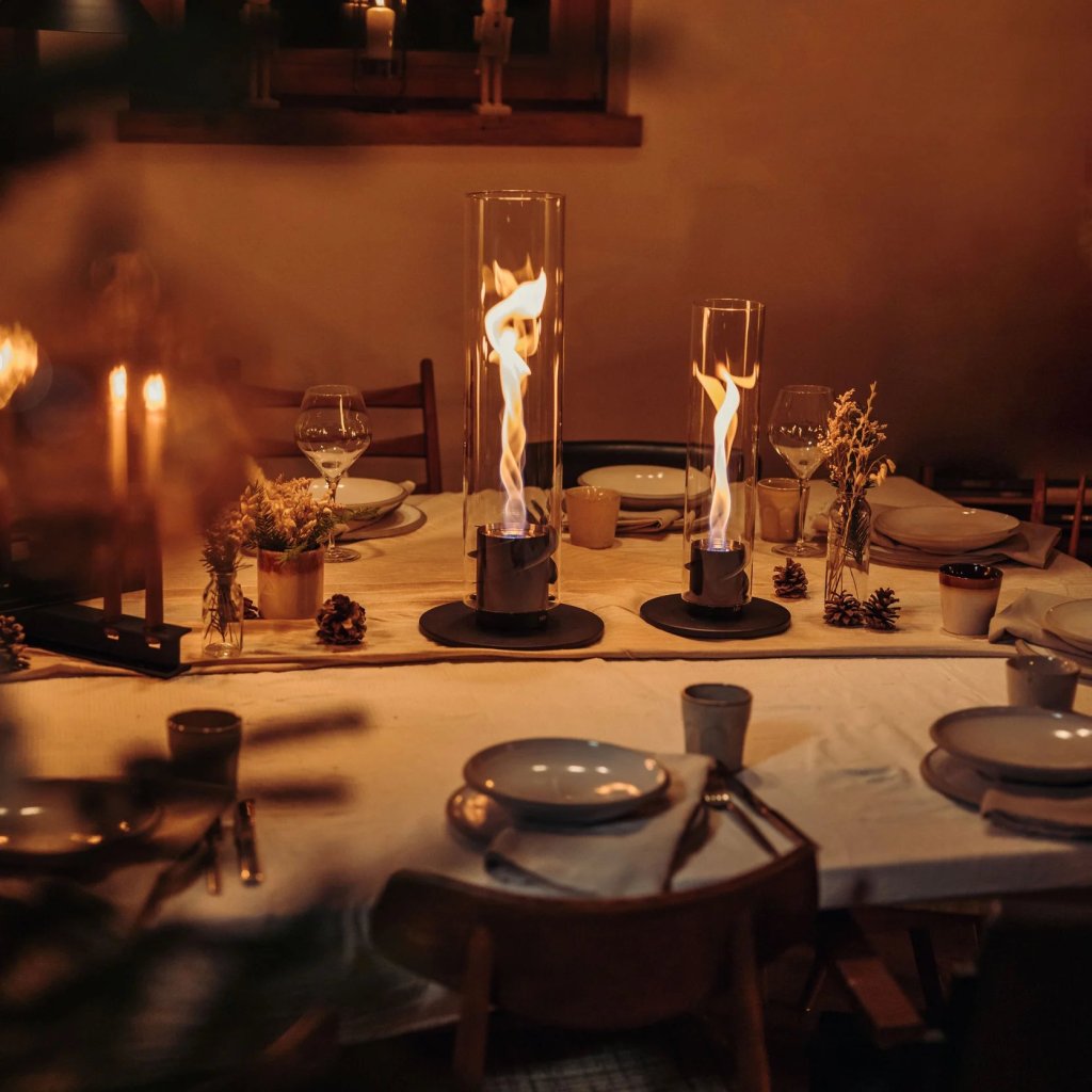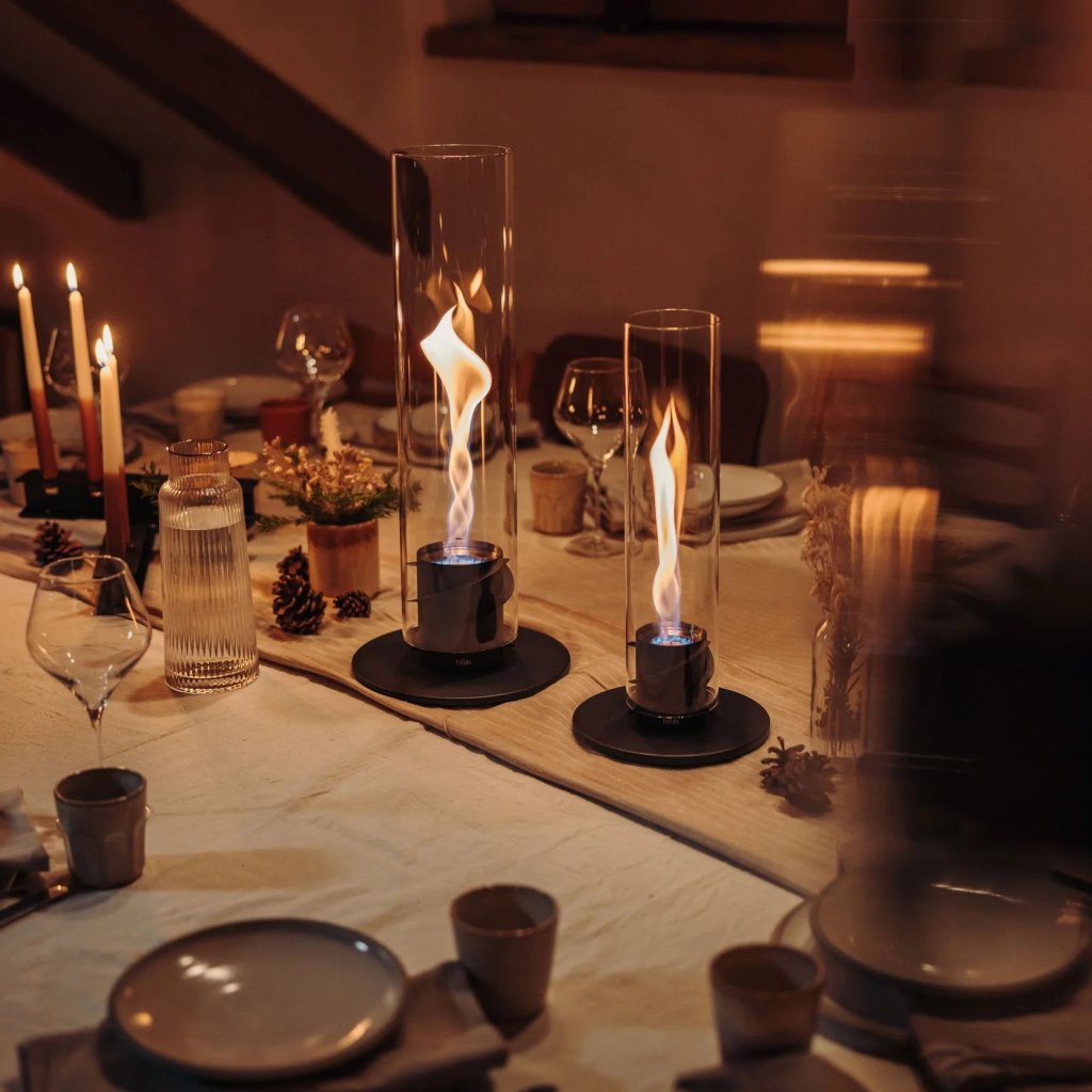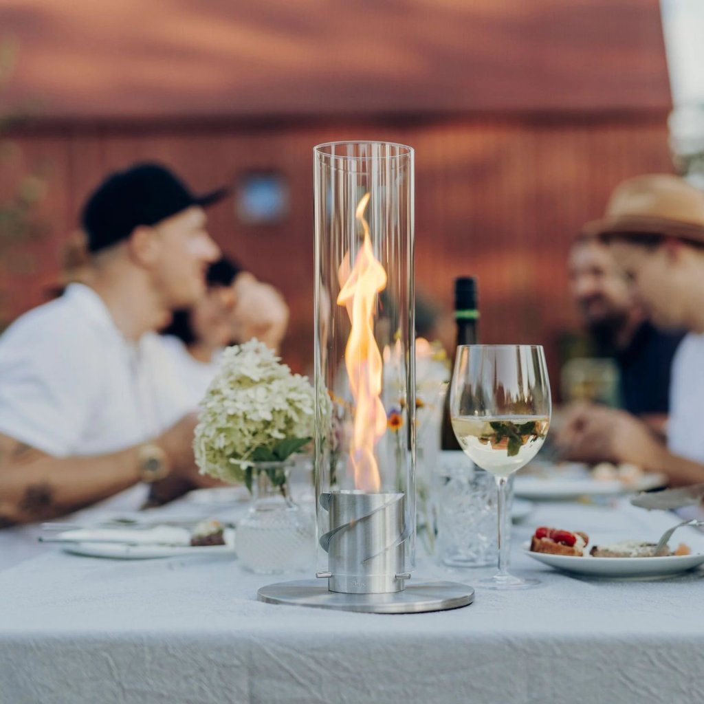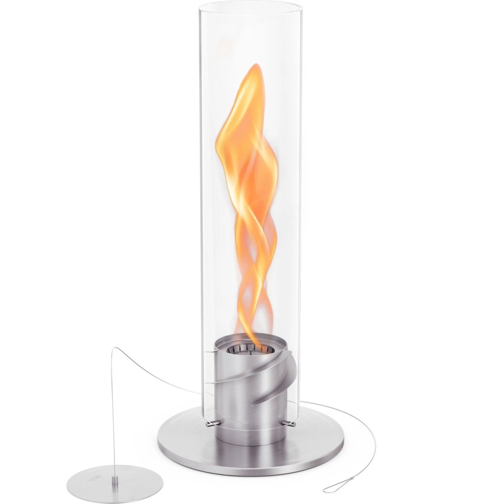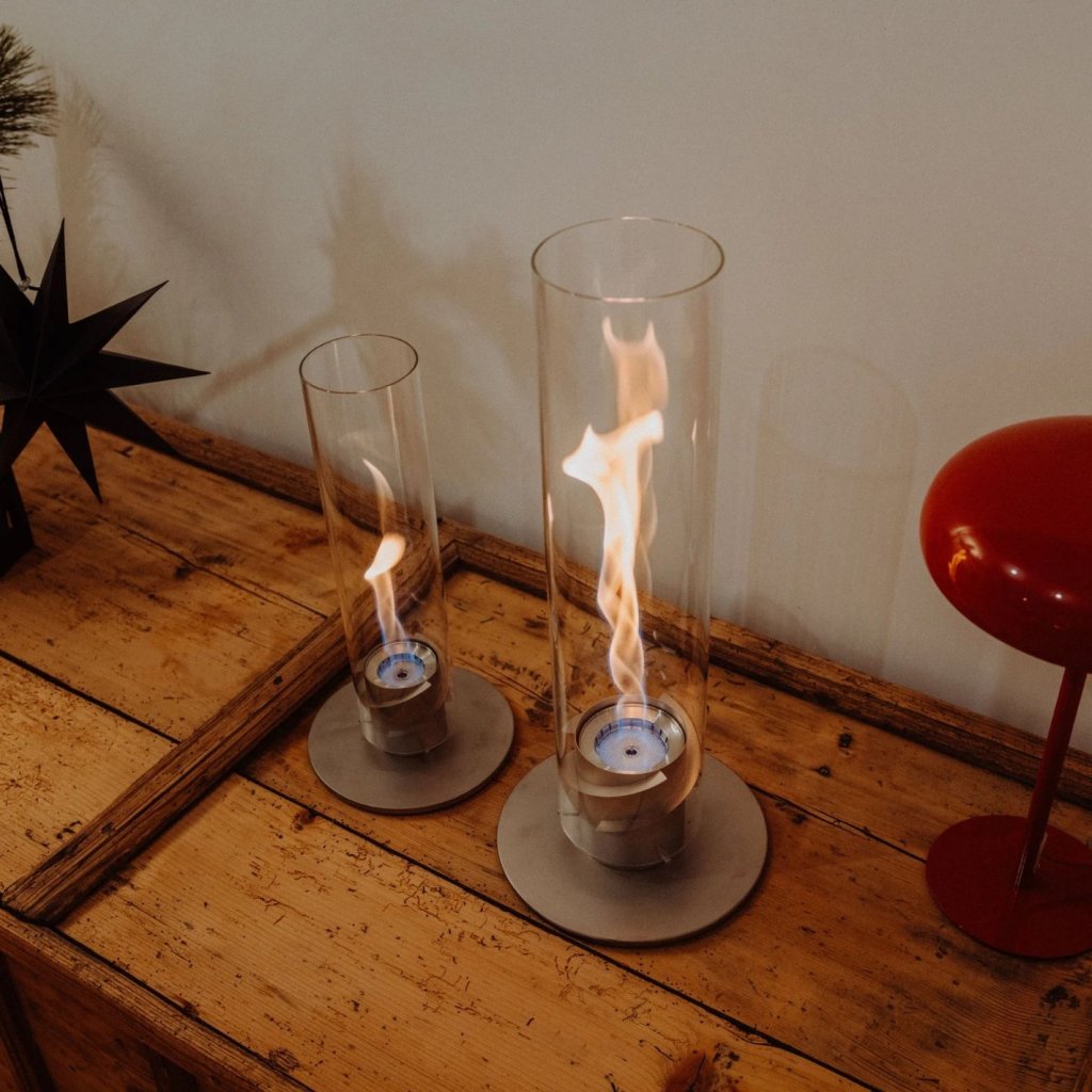 - the glass cylinder protects the flame from the wind and also serves as a safety barrier, making the fireplace safe to use even in the presence of children or pets