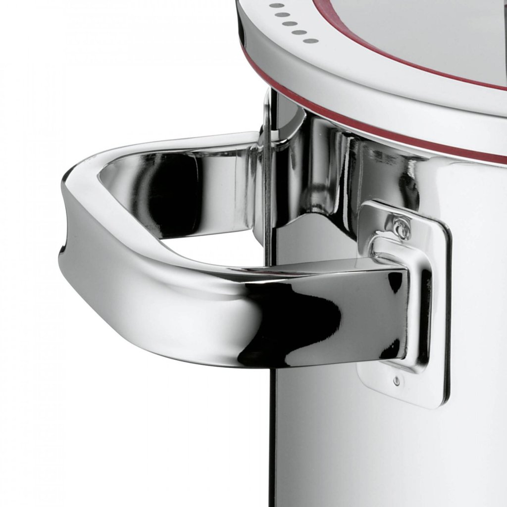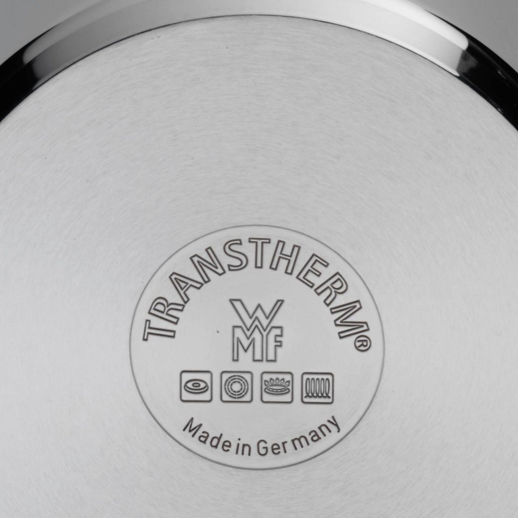 WMF uses 18/10 stainless steel, registered under the brand name Cromargan®, for the production of most of its pots.The "Crom" in the name stands for chrome, while the rest of the name "argan" is derived from the Latin word argentum, meaning silver. The name of this material aptly refers to the extra shiny appearance of the pots, which is due to the relatively high percentage of nickel.