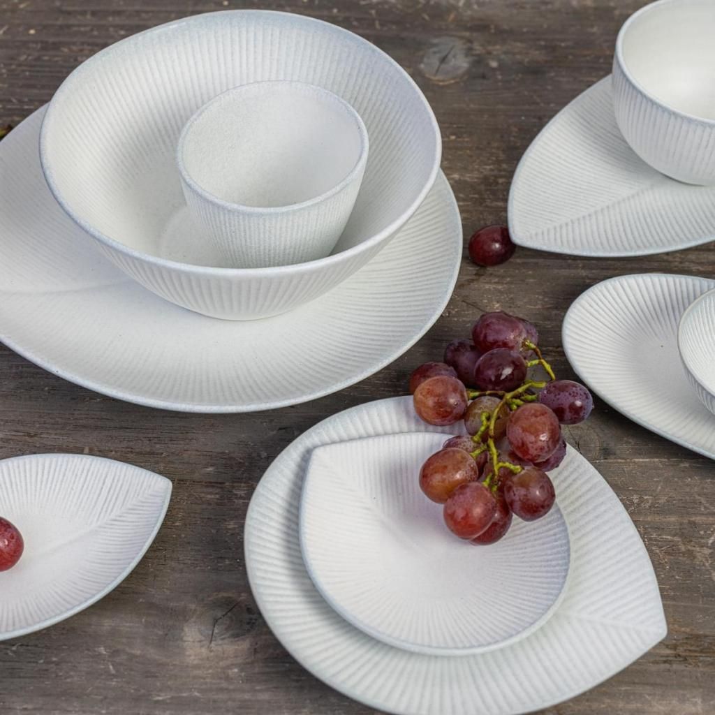 - The leaf shape with slightly rounded edges resembles a natural imprint in the snow, so that even simple dishes gain a touch of elegance and quiet harmony.