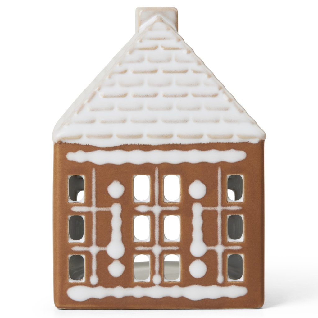 Tealight holder GINGERBREAD LIGHTHOUSE 12 cm, brown, stoneware, Kähler