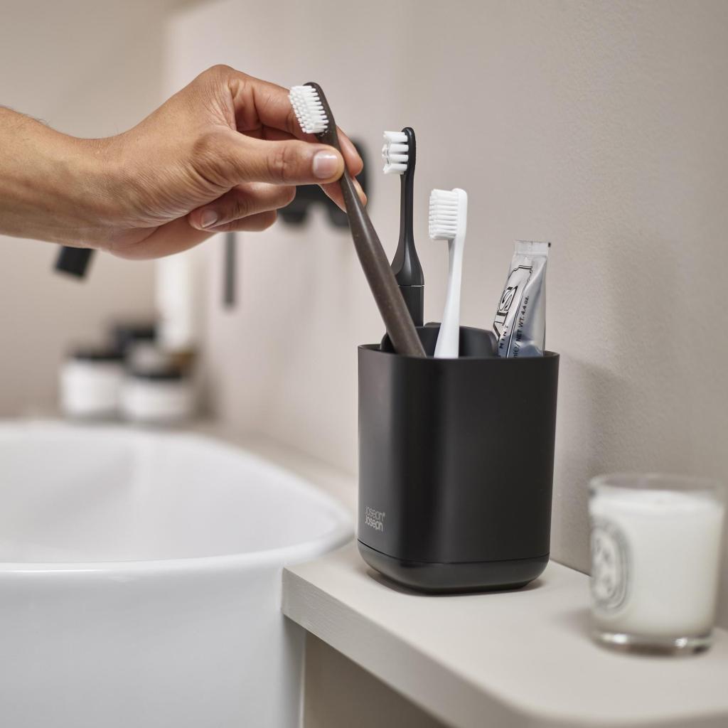 Toothbrush cup EASYSTORE 70598 13 cm, black, plastic, Joseph Joseph