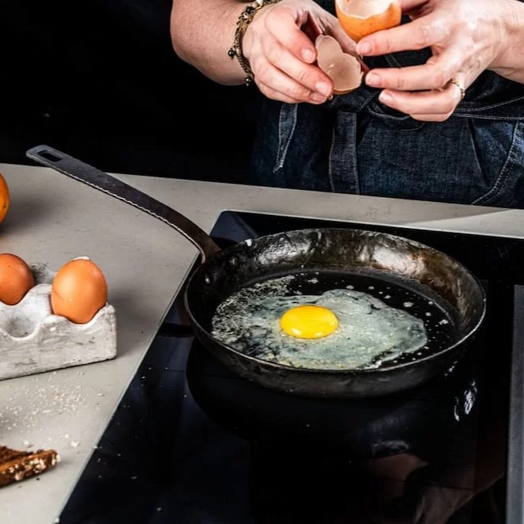- Thanks to the absence of PFAS, chemical layers and coatings, it creates its own natural non-stick surface that only improves with each use.