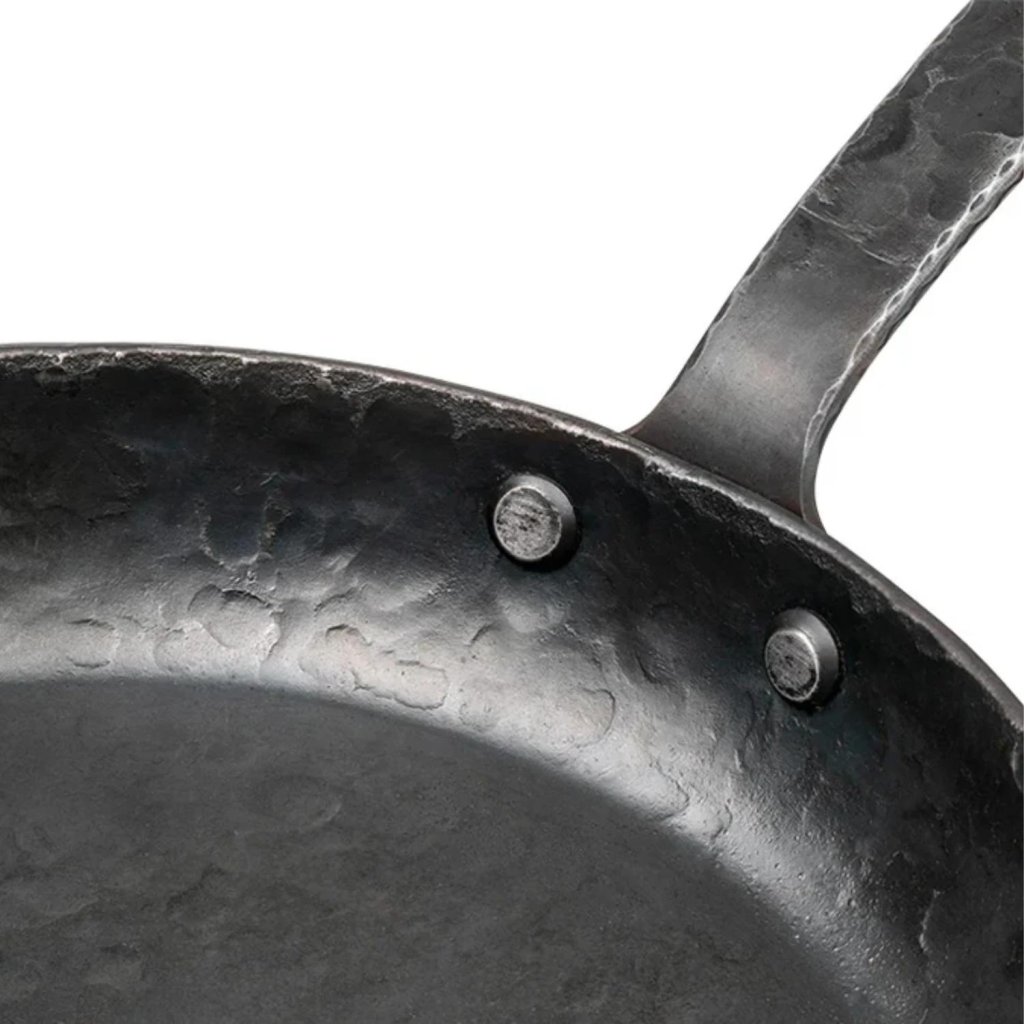 - The hand-forged construction of 3 mm thick carbon steel looks robust and will last for many years of daily use.