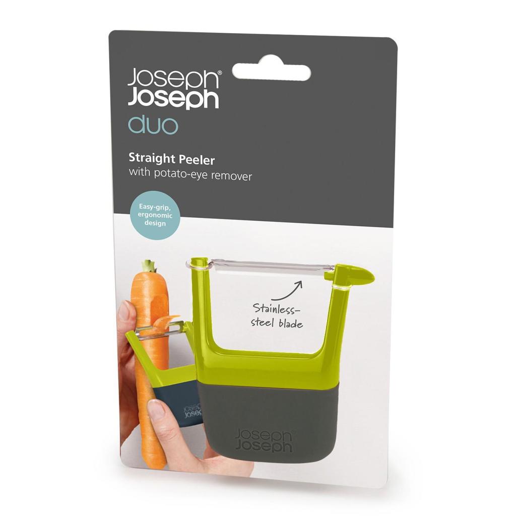 - The Joseph Joseph DUO straight peeler is a practical helper for quick and comfortable peeling of potatoes, carrots, cucumbers, and other vegetables for everyday cooking.