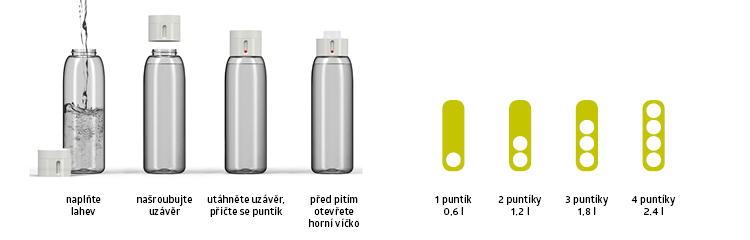 A Dot bottle with a counter can become the coach of your drinking regime. Sufficient fluid intake is essential for a healthy lifestyle. That's why the designers at Joseph Joseph have come up with a bottle that will keep track of your drinking regime. Every time you refill and tighten the cap, one dot is added - so at the end of the day you'll have a perfect overview of how much you've drunk.
