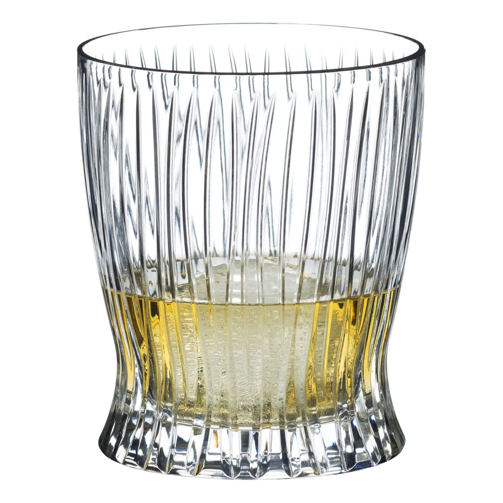 The stylish and nostalgic Barware collection contrasts sharply with the clean design of the wine glasses from the traditional manufacturer Riedel. The decorated and precisely machined whisky glasses of the Fire series are inspired by the Art Nouveau period. The external decorative decoration is reminiscent of flames and was designed by Georg Riedel. Fire is lighter and more subtle than the other lines in this collection "Louis" and "Spey".
