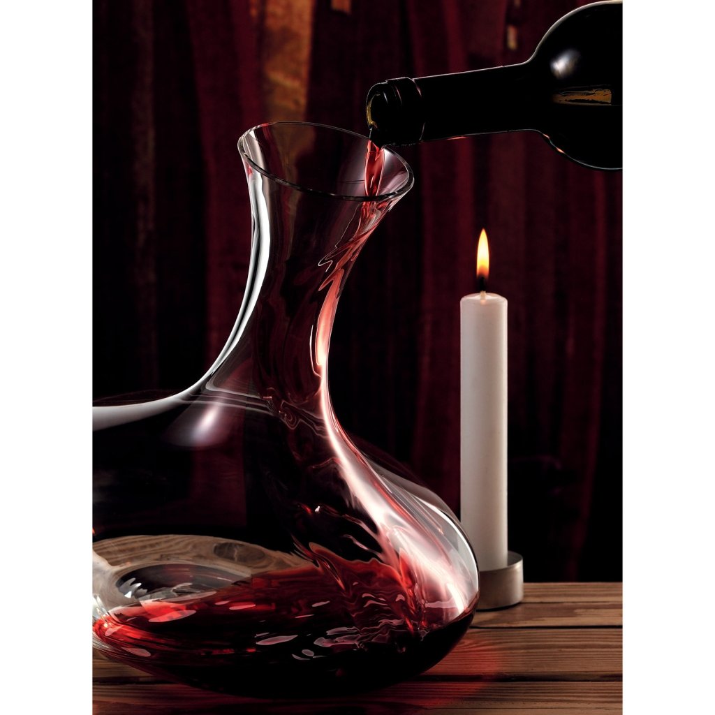 - The shape of the carafe leaves a large surface area for the wine to breathe